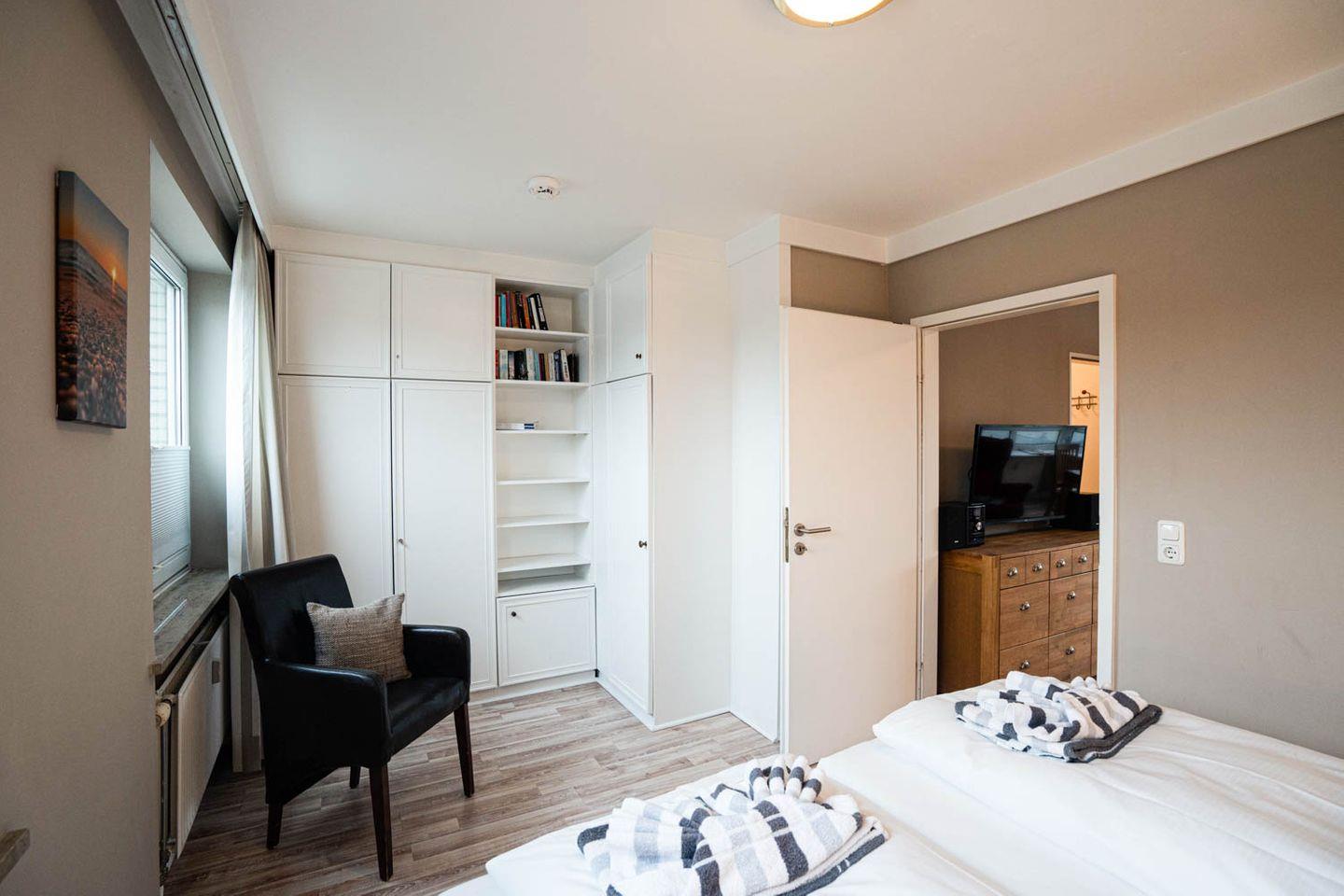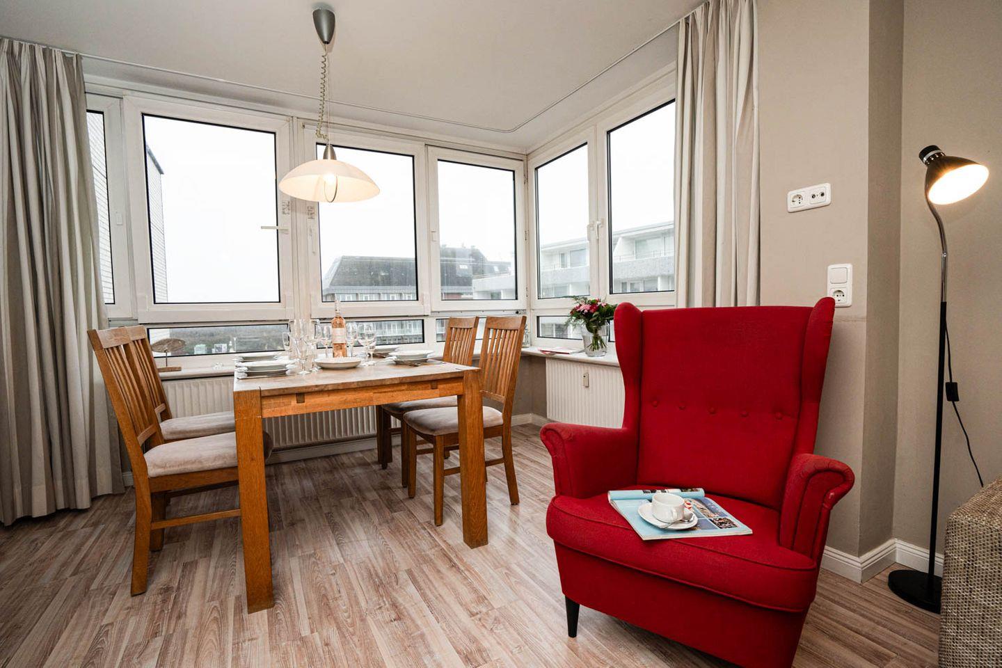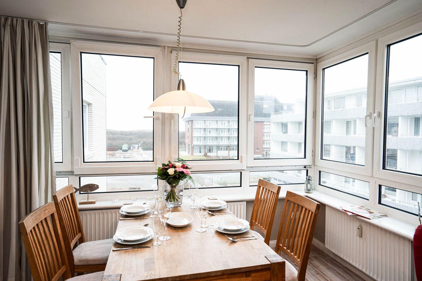 Moin und herzlich willkommen, sagt der „Muschelsucher“, der zu seinem Namen passend sehr nah am Strand residiert. Dieses gleichnamige, sehr gemütliche Ferien-Appartement, ist keine fünf Minuten zu Fuß vom Flutsaum entfernt und ein kleines Ferienvergnügen-Konzentrat: 44 Quadratmeter groß mit einem Extra-Schlafzimmer und einer Schlafcouch im Wohnzimmer bietet es Platz für bis zu vier Personen und hält ein attraktive Detail parat-den über Eck verglasten Essplatz mit Ausblick Richtung West und Nord.
