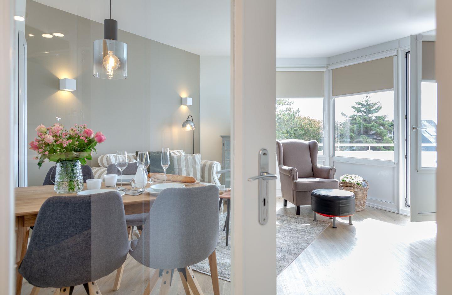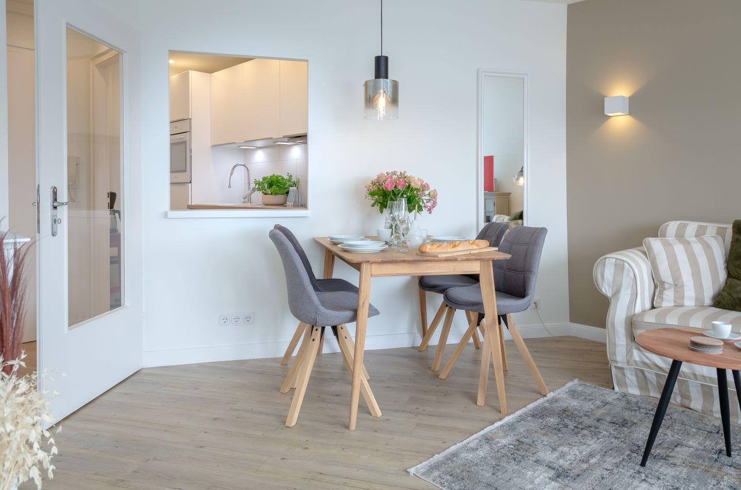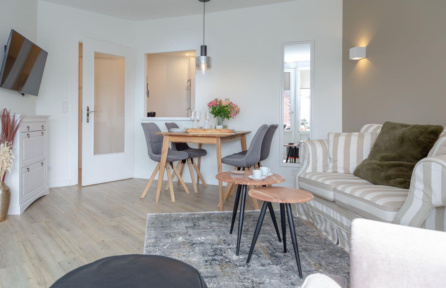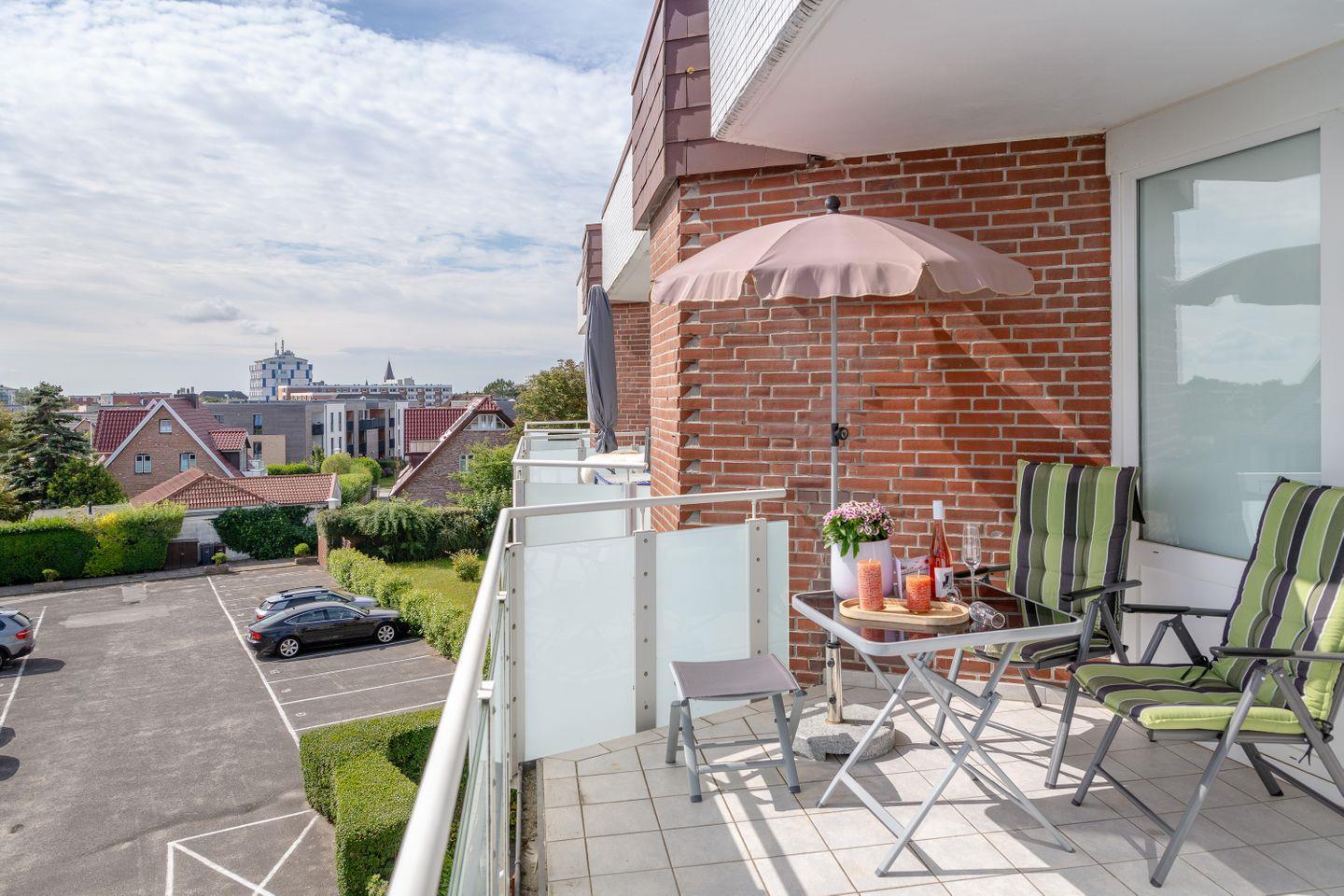 Gemütliche Ferienwohnung Louis Kamperhof in Westerland, ideal für Aktivurlauber und Strandliebhaber mit Balkon und moderner Ausstattung.