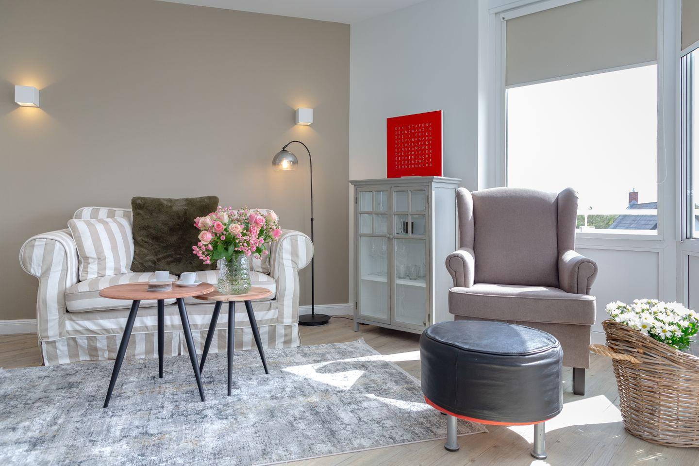 Gemütliche Ferienwohnung „Louis Kamperhof“ (40 m²) zentral in Westerland, perfekt für 2 Personen. Komfortables Schlafzimmer, separates Wohnzimmer, modernes Bad mit Dusche, gut ausgestattete Küche mit Kaffeemaschine. Balkon mit Sitzmöglichkeiten. WLAN, Waschmaschine & Trockner (gemeinschaftlich). Öffentliche Parkplätze vor dem Haus. Allergikerfreundlich (keine Hunde). Nichtraucher-Domizil.