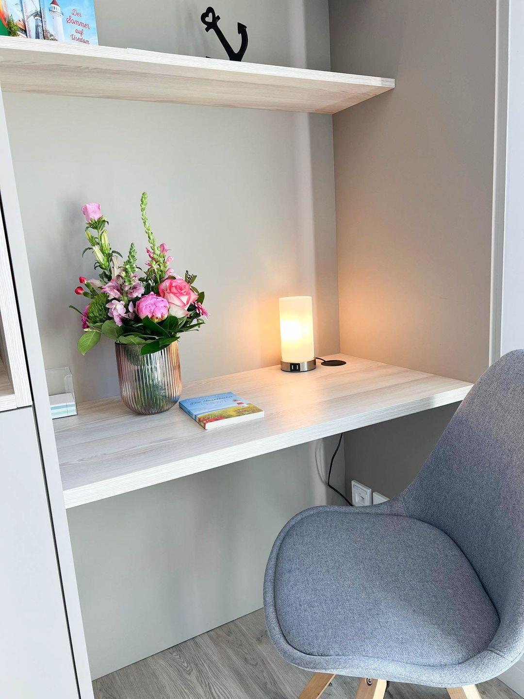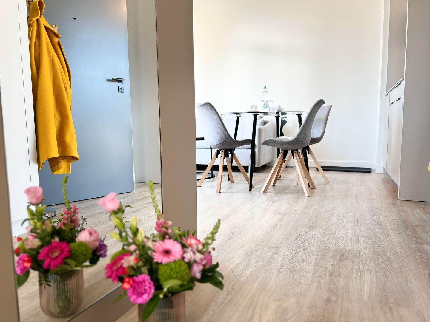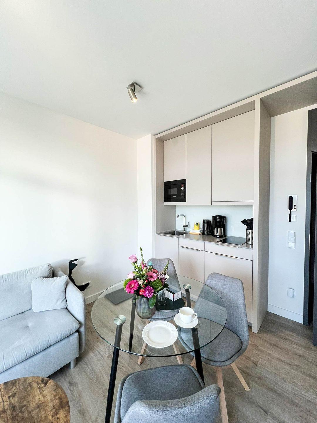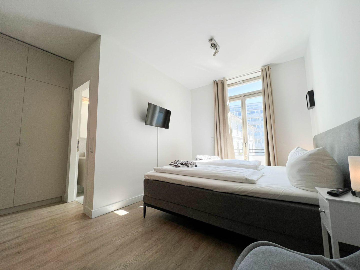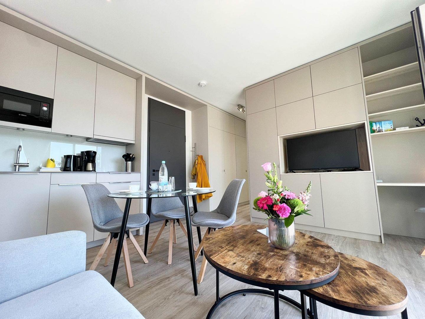 Die Wohnung hat 35 Quadratmeter, ein separates Schlafzimmer und ein Vollbad, zum Haus gehören eine praktische Tiefgarage (Duplex), eine gemeinschaftliche Waschküche mit Waschmaschine und Trockner und selbstverständlich Internet/Wlan. Tür an Tür wohnen Sie hier übrigens mit dem „Ankerplatz“, einem ähnlichen, etwas kleineren Appartement direkt nebenan, das Sie ebenfalls in unserem Portfolio finden - perfekt also, wenn Sie mit bis zu vier Personen verreisen und größtmögliche Nähe bei etwas freundschaftlicher Distanz wahren möchten.