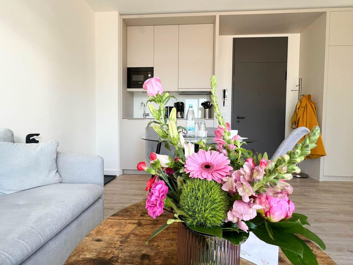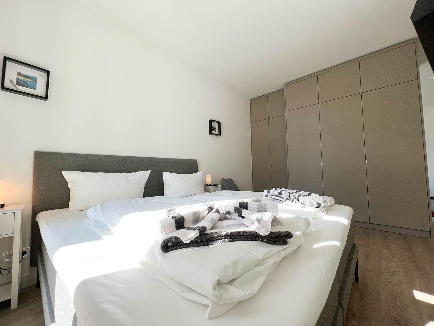 Sozusagen Tür an Tür wohnen Sie hier übrigens unter anderem mit dem „Ankerplatz“ und der „Deck 2“, zwei ähnlich luxuriös ausgestatteten Appartements, die Sie ebenfalls in unserem Portfolio finden – perfekt also, wenn Sie mit mehreren Partien verreisen und größtmögliche Nähe bei etwas freundschaftlicher Distanz haben möchten (dafür braucht es aber natürlich ein wenig Glück, damit die Wohnungen parallel auch frei sind). Übrigens: Im Erdgeschoss, auch das mag für manche unter praktischen Gesichtspunkten ein Magnet sein, findet sich der vielleicht schickste und größte Rossmann, den es überhaupt gibt.