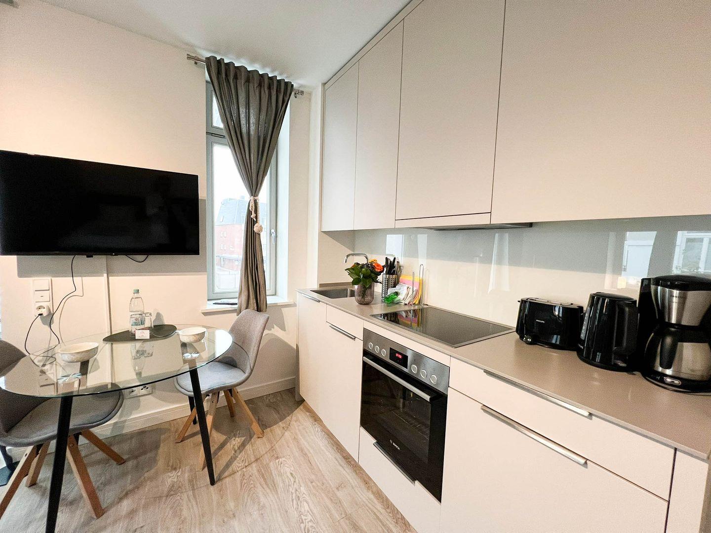 Modern eingerichtete Ferienwohnung "Ankerplatz" in Westerland, ruhig und zentral, ideal für Alleinreisende oder Paare.