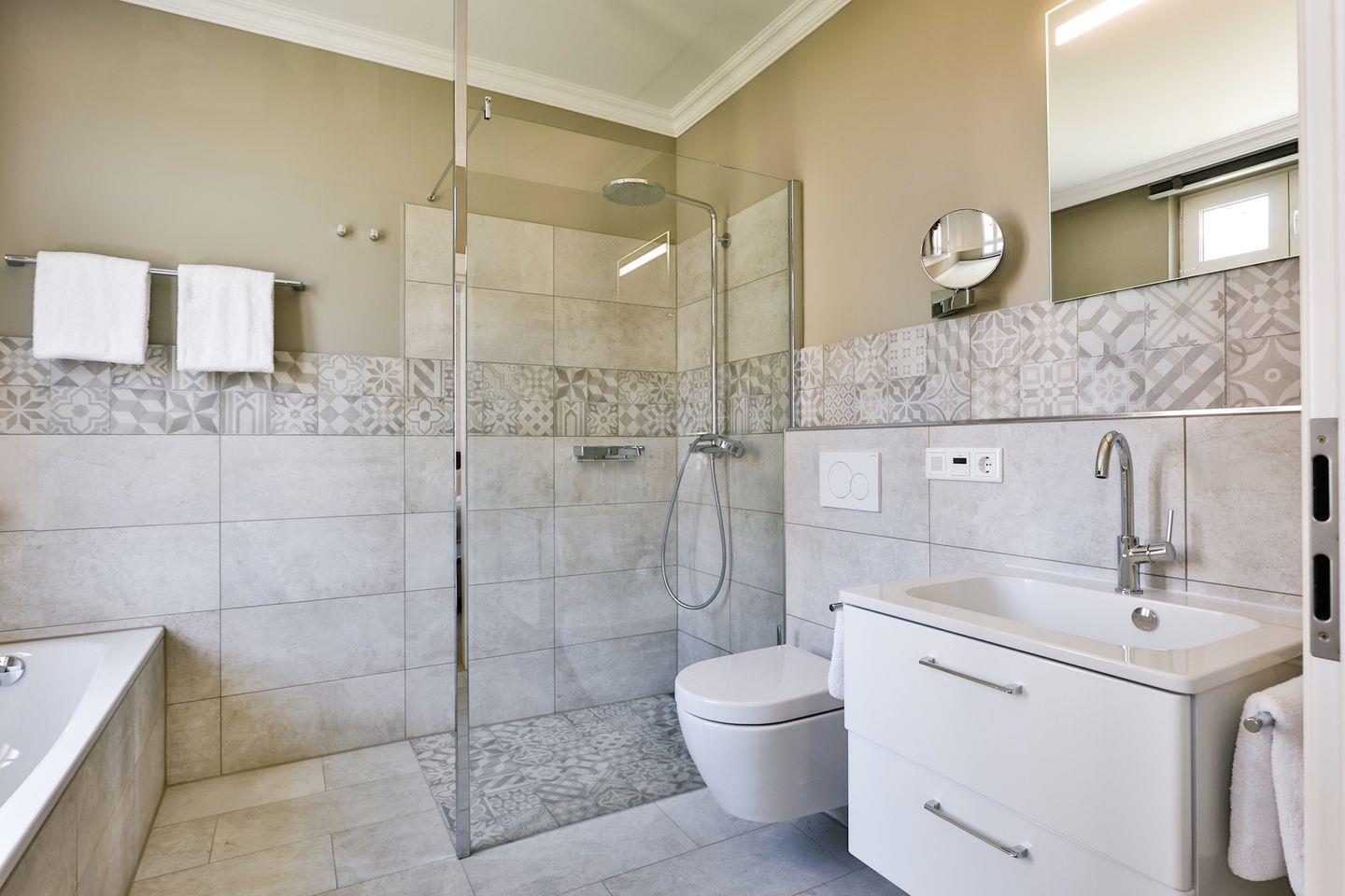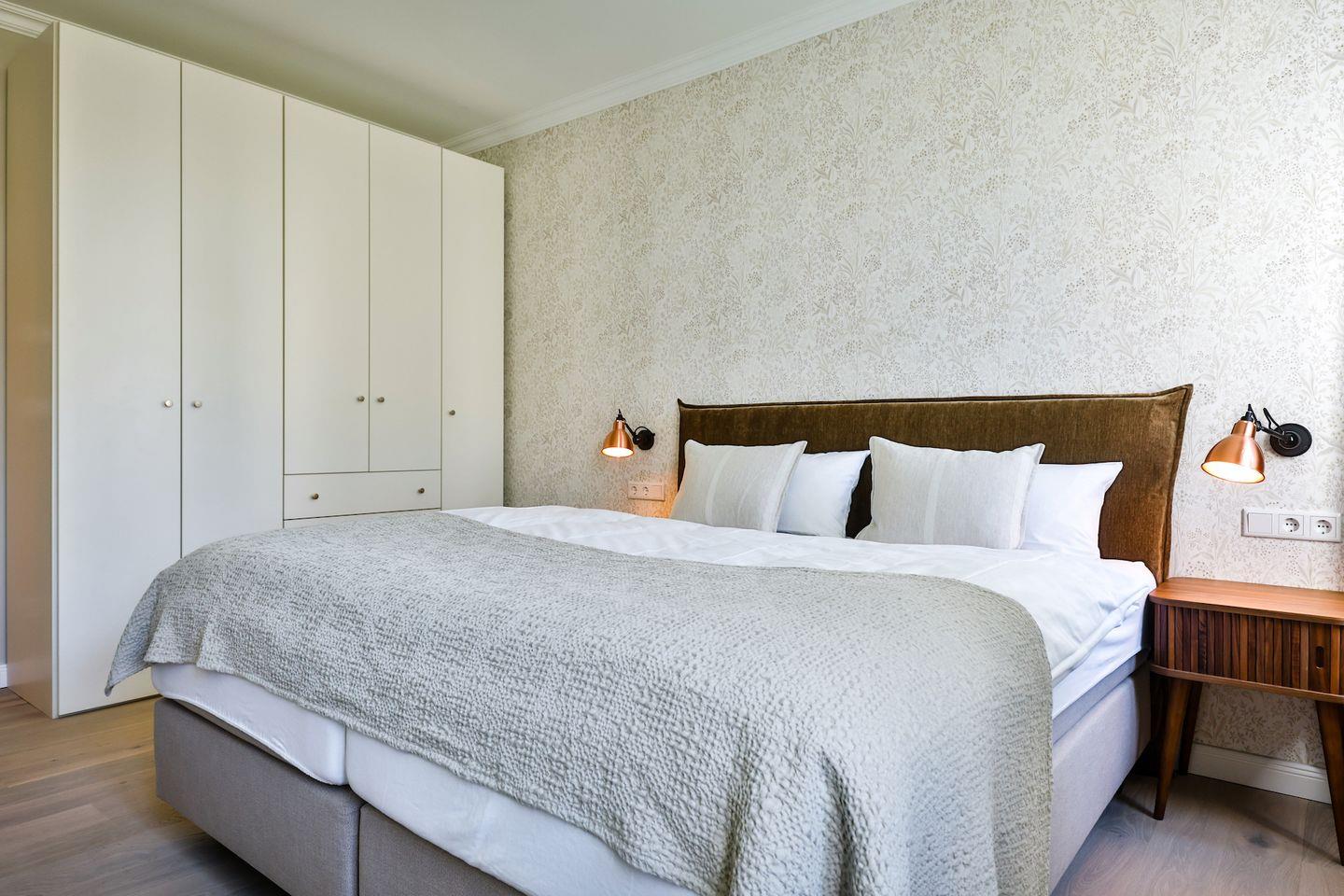 Beide Schlafzimmer sind sehr geschmackvoll eingerichtet und bieten höchsten Schlafkomfort. Das Hauptschlafzimmer ist mit einem Boxspringbett (180x200 cm) und TV ausgestattet. Das zweite Schlafzimmer ist ebenfalls mit einem Boxspringbett (160x200 cm) und TV eingerichtet. Beide Zimmer haben ein ruhiges Ambiente für erholsame Nächte. Die Wohnung bietet zwei moderne Badezimmer, die mit ebenerdigen Duschen, WC und Fön ausgestattet sind; ein Badezimmer hat zusätzlich eine Badewanne zum Entspannen und Wohlfühlen. Abgerundet wird der Bereich durch ein separates Gäste-WC.