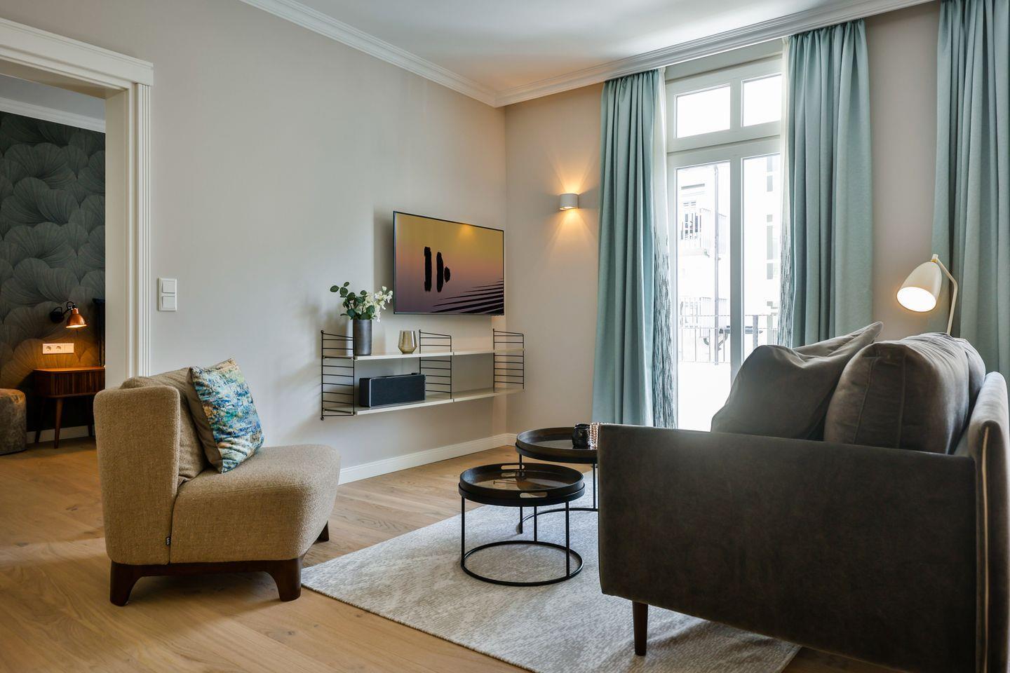 Der großzügige Wohn- und Essbereich lädt mit seiner stilvollen Einrichtung und dem Zugang zur Loggia zur Entspannung ein. Hier scheint die Sonne für Sie zu fast jeder Tageszeit. Oder Sie lassen den Tag im Freien ausklingen. Die hochwertige Loewe klang s3-Anlage verfügt über Digital-Radio, Bluetooth, CD-Player und USB-Anschlüsse – ideal für exklusive Unterhaltung.