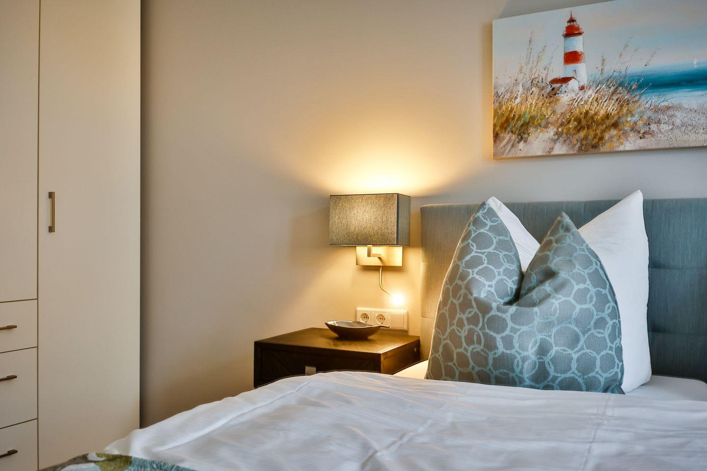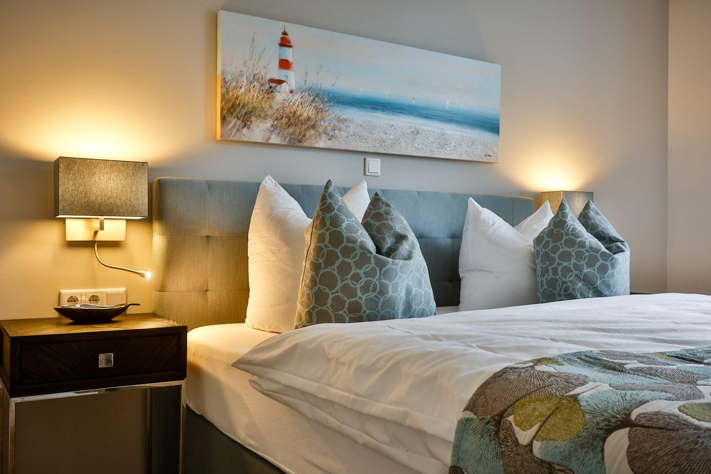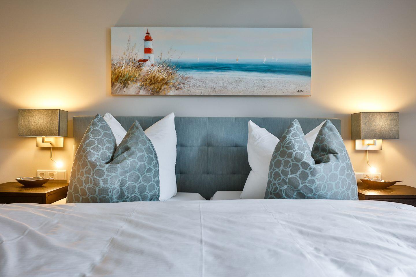 Moderne 2-Zimmer-Ferienwohnung mit Balkon, Wellnessbereich und zentraler Lage in Westerland, nur 200 m vom Strand entfernt.