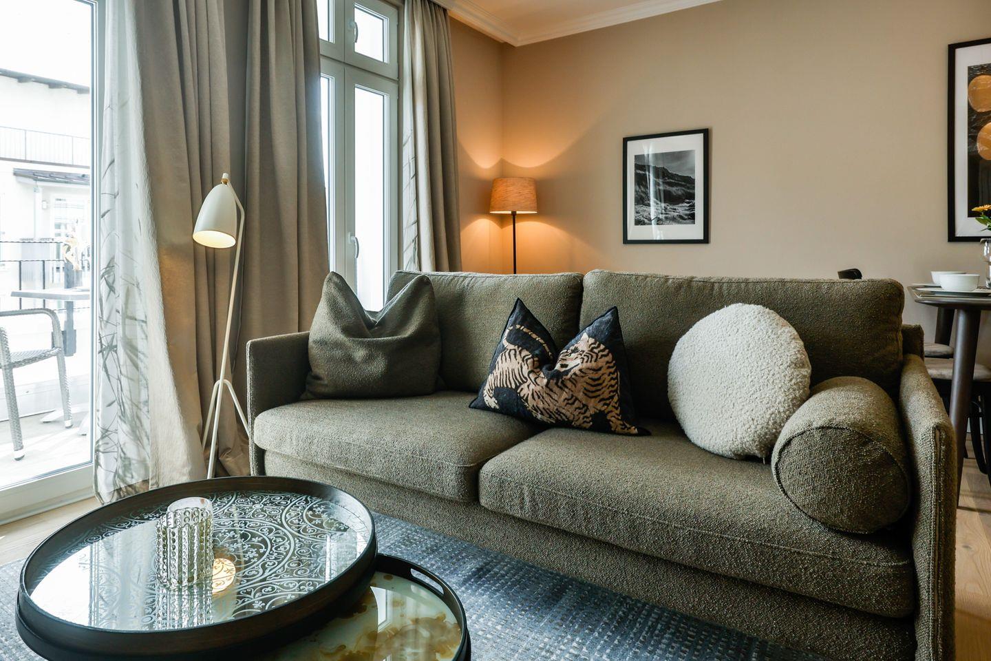 Der helle Wohn- und Essbereich lädt zum Verweilen ein und hat einen direkten Zugang zur Loggia in Südausrichtung. Hier scheint die Sonne zu fast jeder Tageszeit oder Sie lassen dort den Abend entspannt ausklingen. Die hochwertige Loewe klang s3-Anlage sorgt für ein exzellentes Klangerlebnis und verfügt über Digital-Radio, Bluetooth, CD-Player und USB-Anschlüsse. Eine moderne Einrichtung mit einem offenen Raumkonzept machen diese Ferienwohnung zu einem Ort der Entspannung und Erholung.