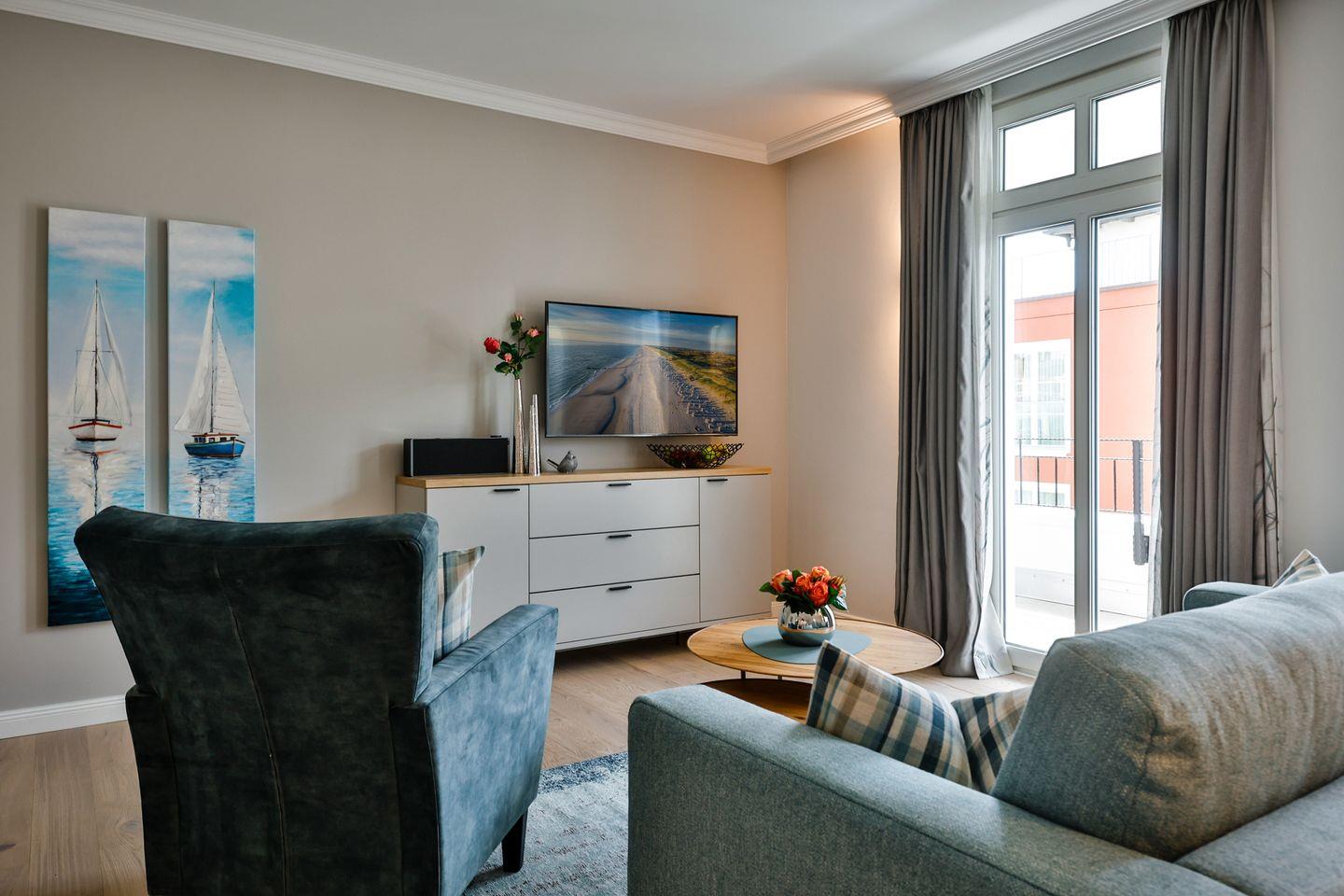 Moderne 2-Zimmer-Ferienwohnung mit Südbalkon und Wellnessbereich im Herzen von Westerland.