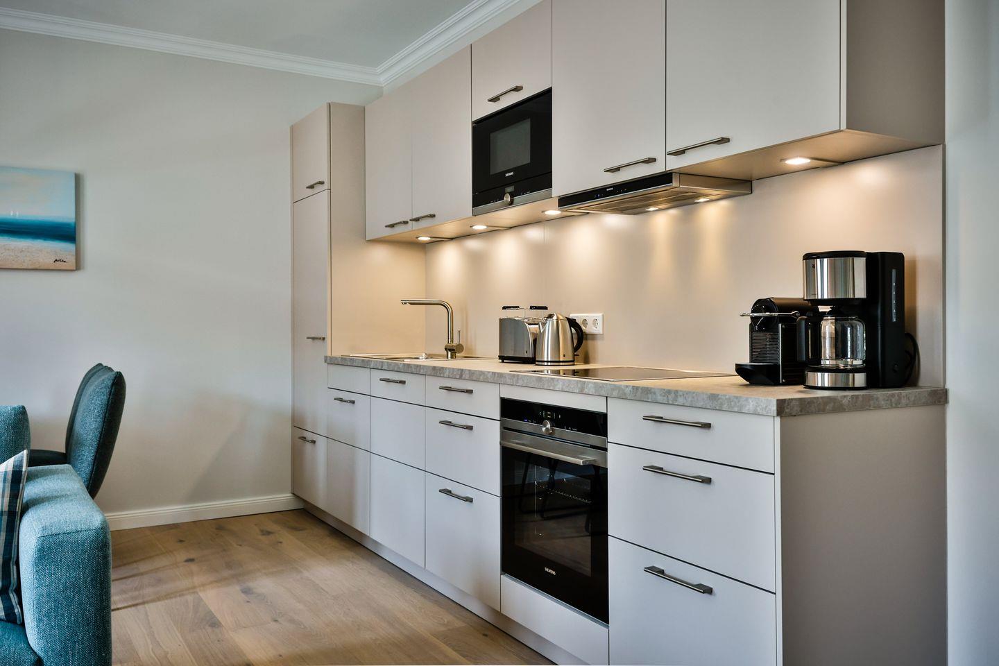 Die offene Küche bietet alles, was Sie in einer Küche erwarten. Hochwertige Elektrogeräte und eine umfangreiche Ausstattung machen das Kochen zum Genuss. Im angrenzenden Essbereich finden Sie einen gemütlichen Platz für gemeinsame Mahlzeiten und gesellige Runden.
