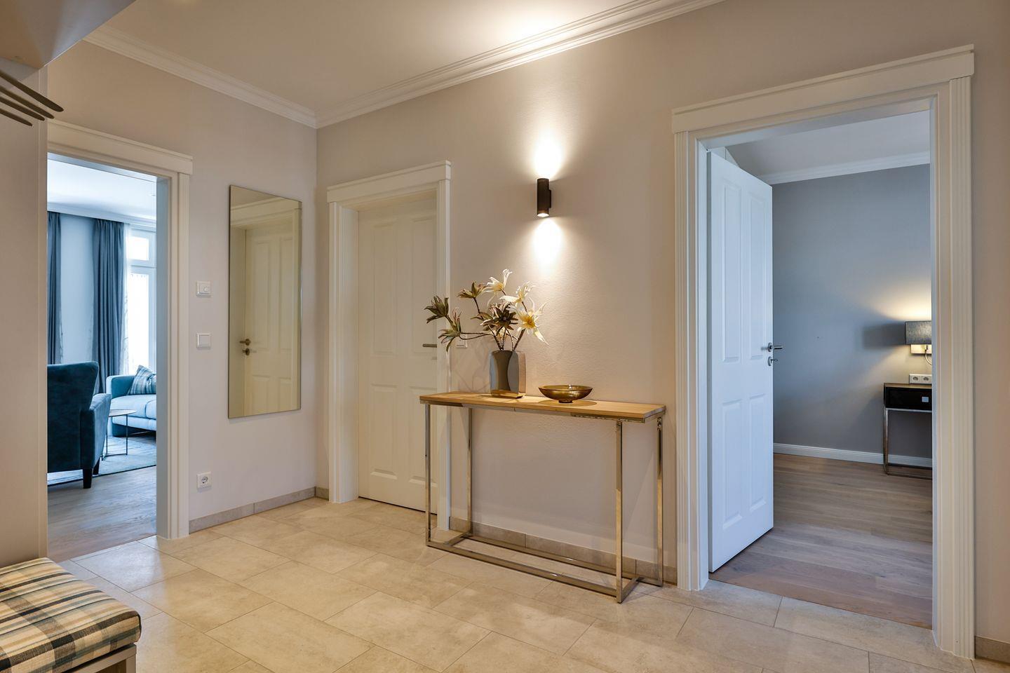 Die Ferienwohnung und das Treppenhaus sind barrierefrei gestaltet. Rollstühle und Rollatoren können dort problemlos abgestellt und aufgeladen werden. Die Bäder bieten viel Platz und haben geräumige, ebenerdige Duschen mit bequemer Bewegungsfreiheit. Bitte beachten Sie, dass die Balkonschwelle eine Höhe von 6 cm aufweist und der Zugang daher nicht vollständig barrierefrei ist.