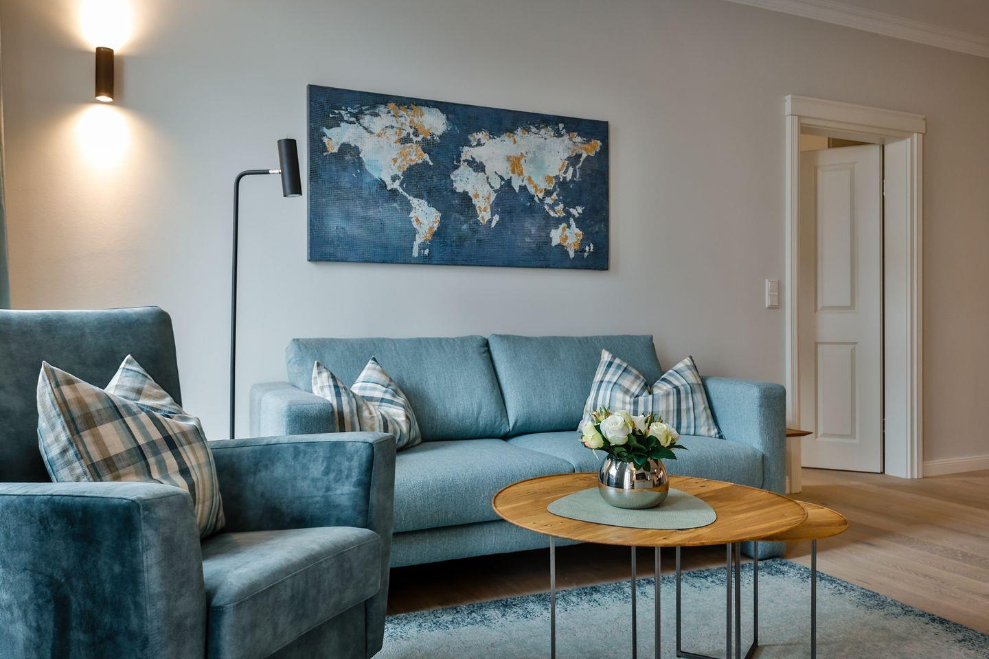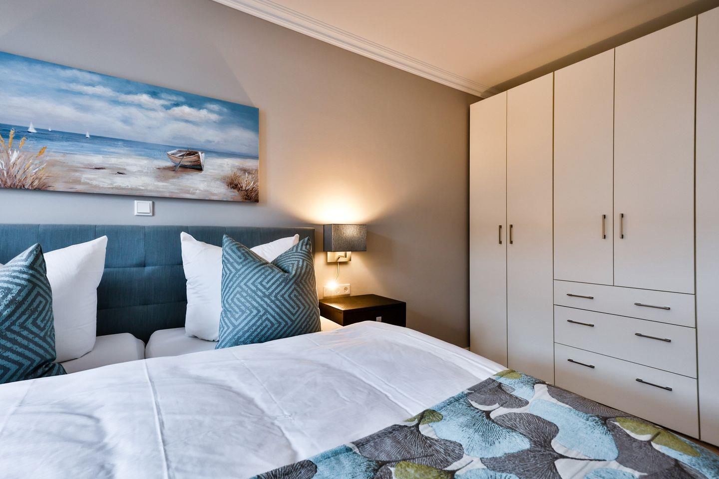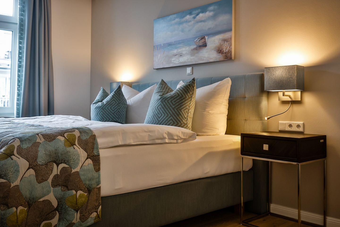 Moderne 2-Zimmer-Ferienwohnung mit Balkon, Wellnessbereich und zentraler Lage in Westerland, nur wenige Schritte vom Strand entfernt.