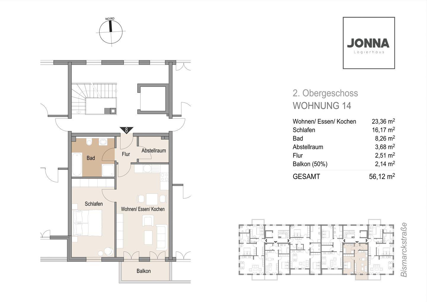 Wohnfläche 56 m²
