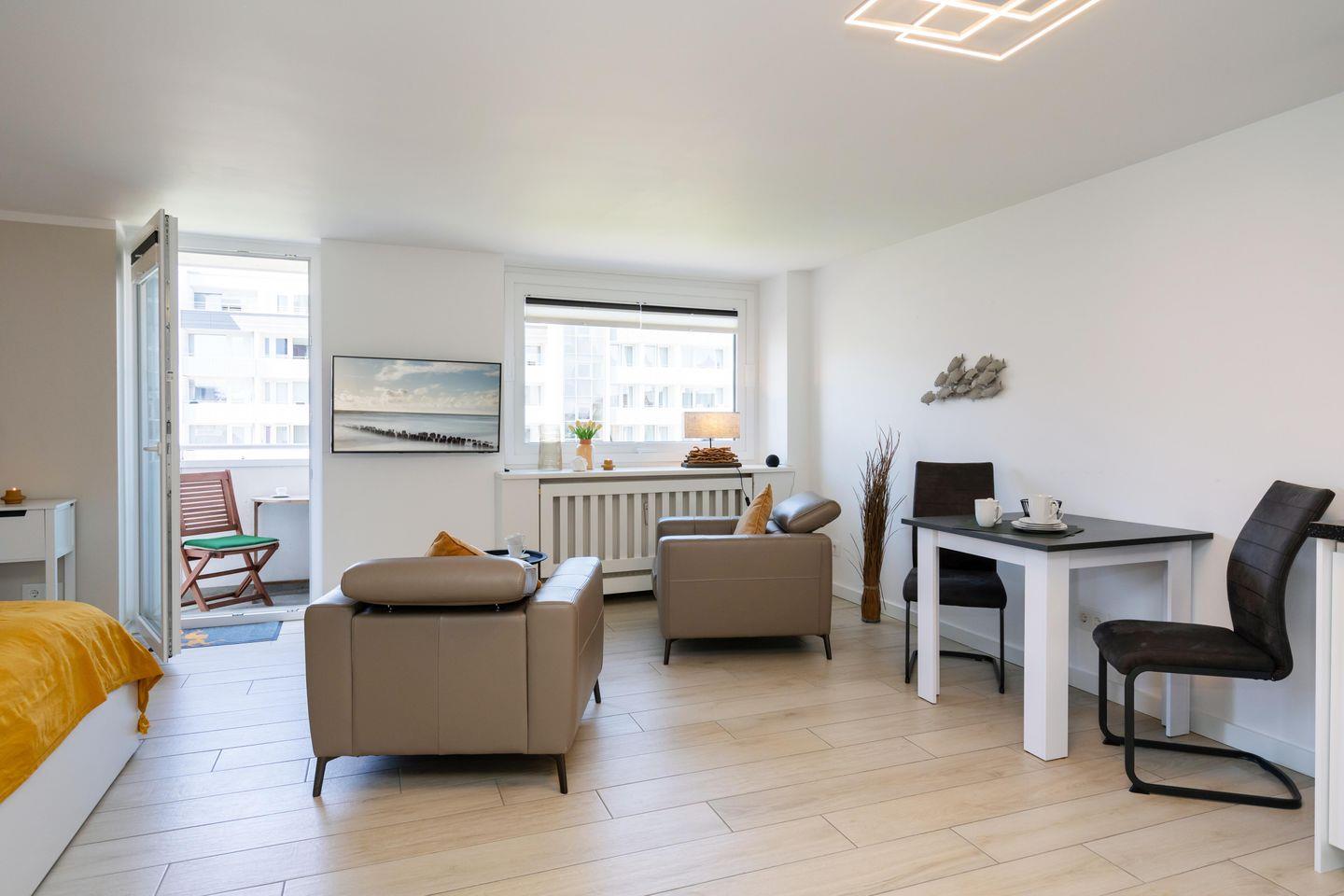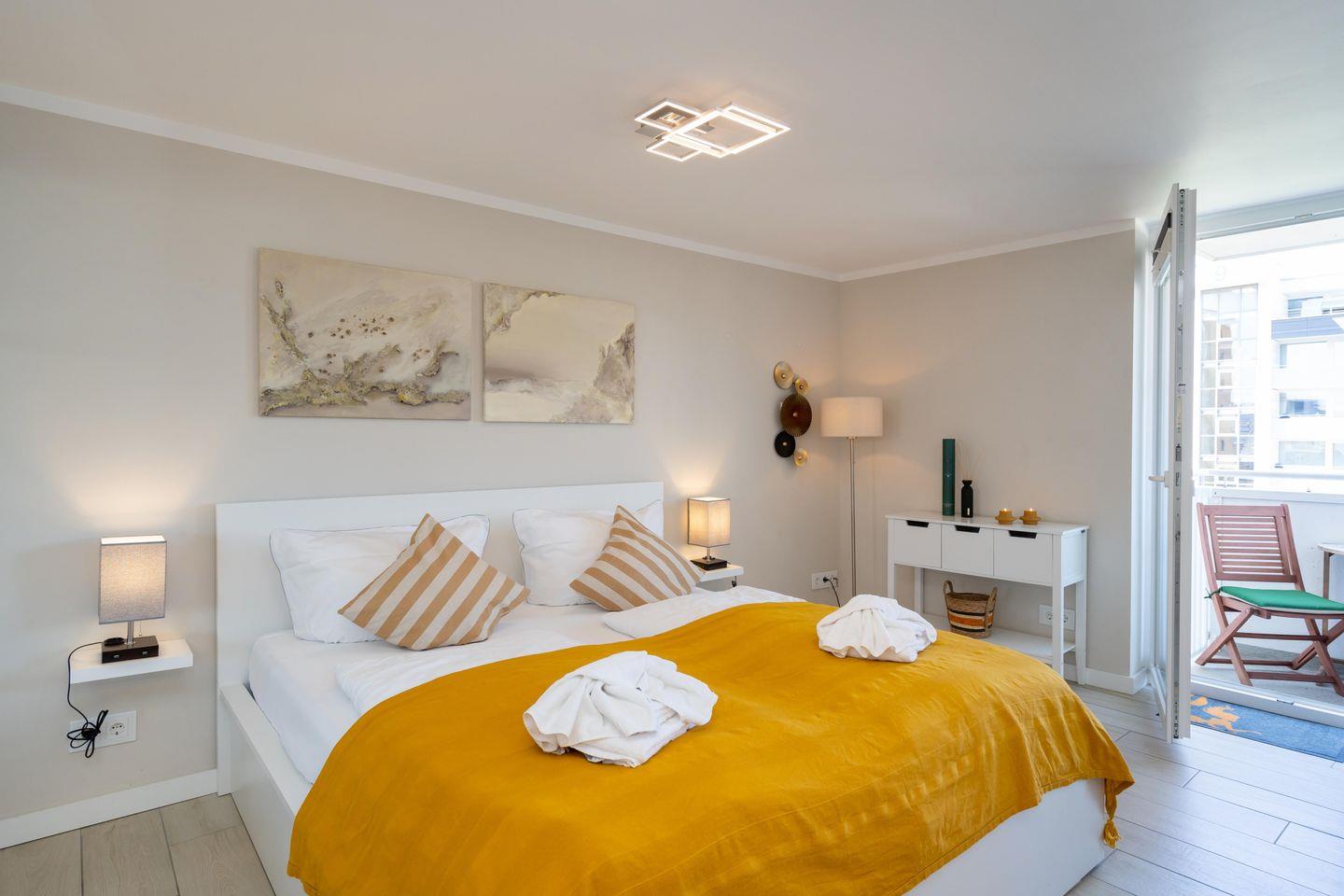 Modernes App. mit Meerblick, Westbalkon, WLAN. Haustiere erlaubt.