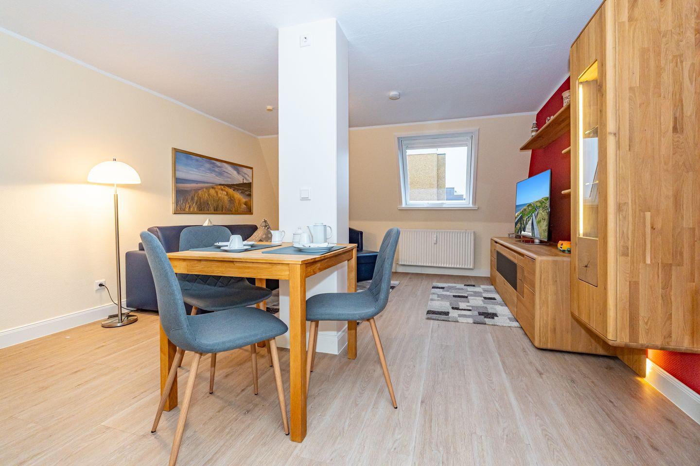 Gemütliche 2-Zimmer-Maisonette mit Balkon, nur 300 m vom Strand in Westerland entfernt.