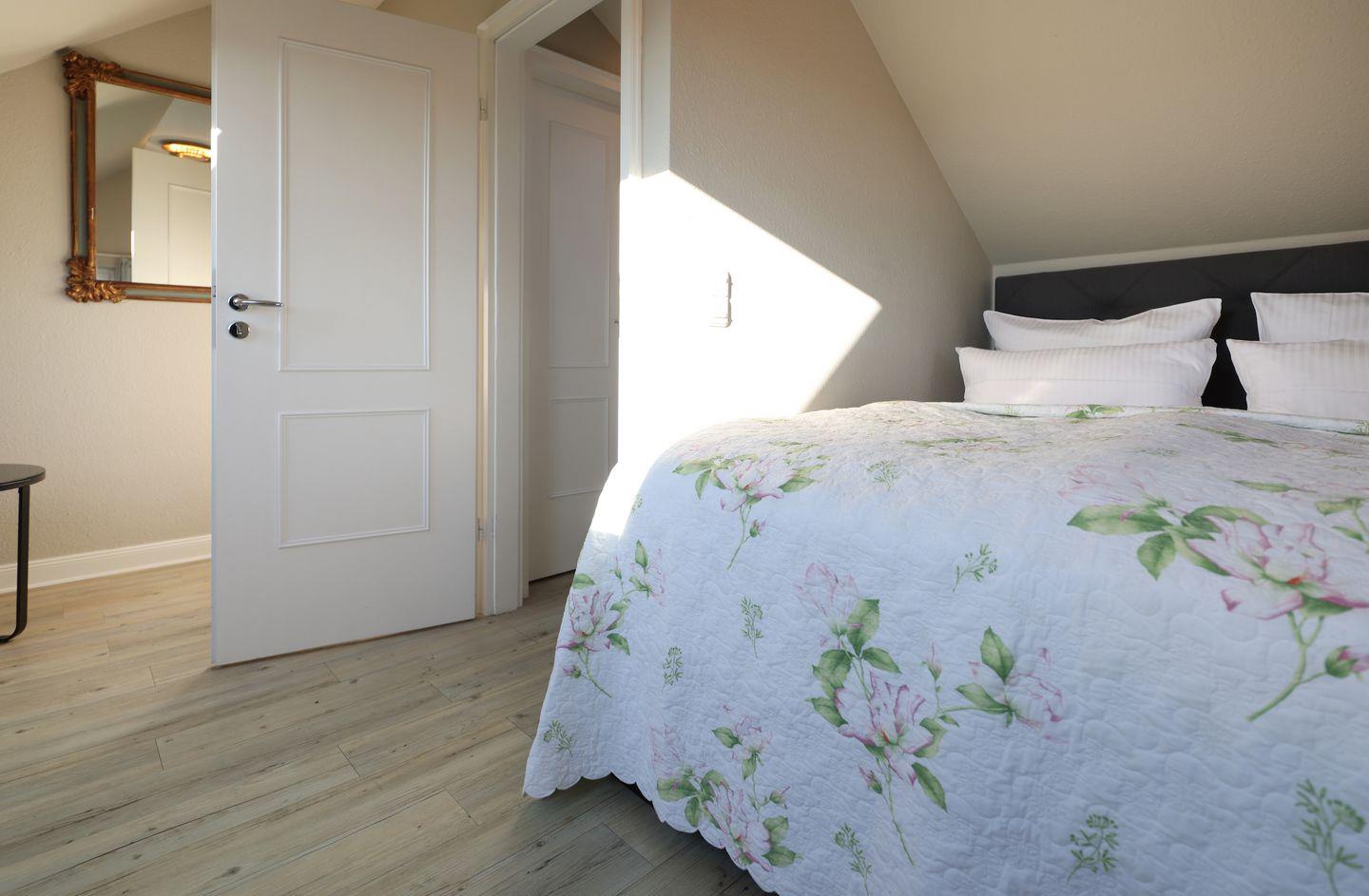 Im Dachgeschoss der Wohnung liegt der helle Schlafbereich, welcher über ein