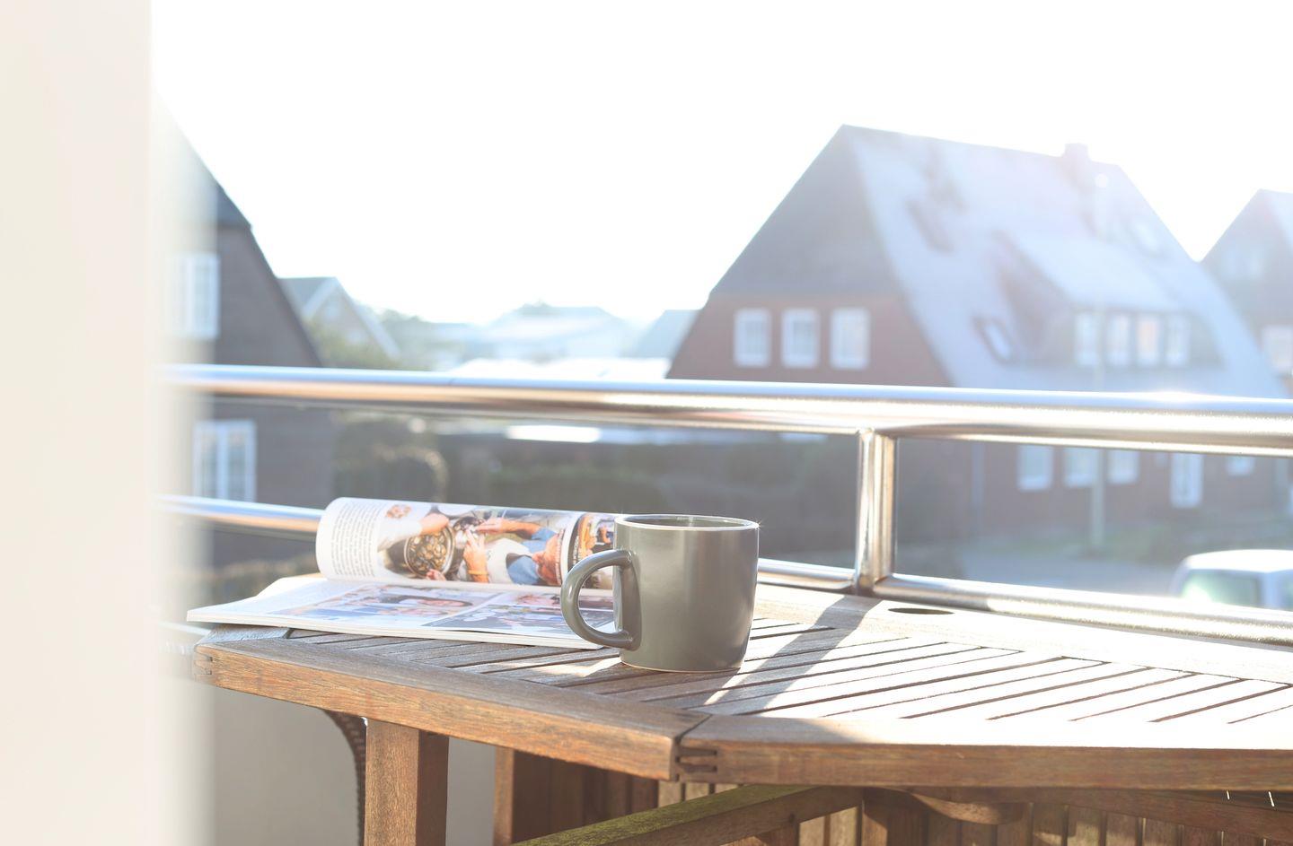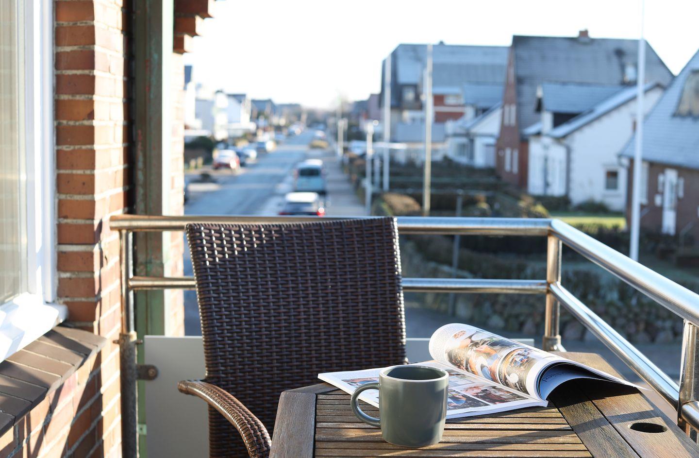 Südbalkon mit Sitzmöglichkeiten gegeben. Von hier aus können Sie den Wellen des