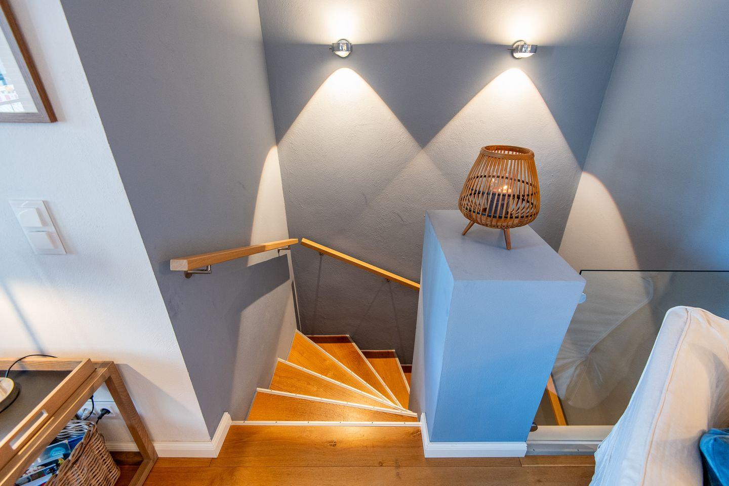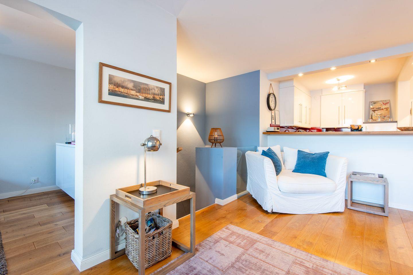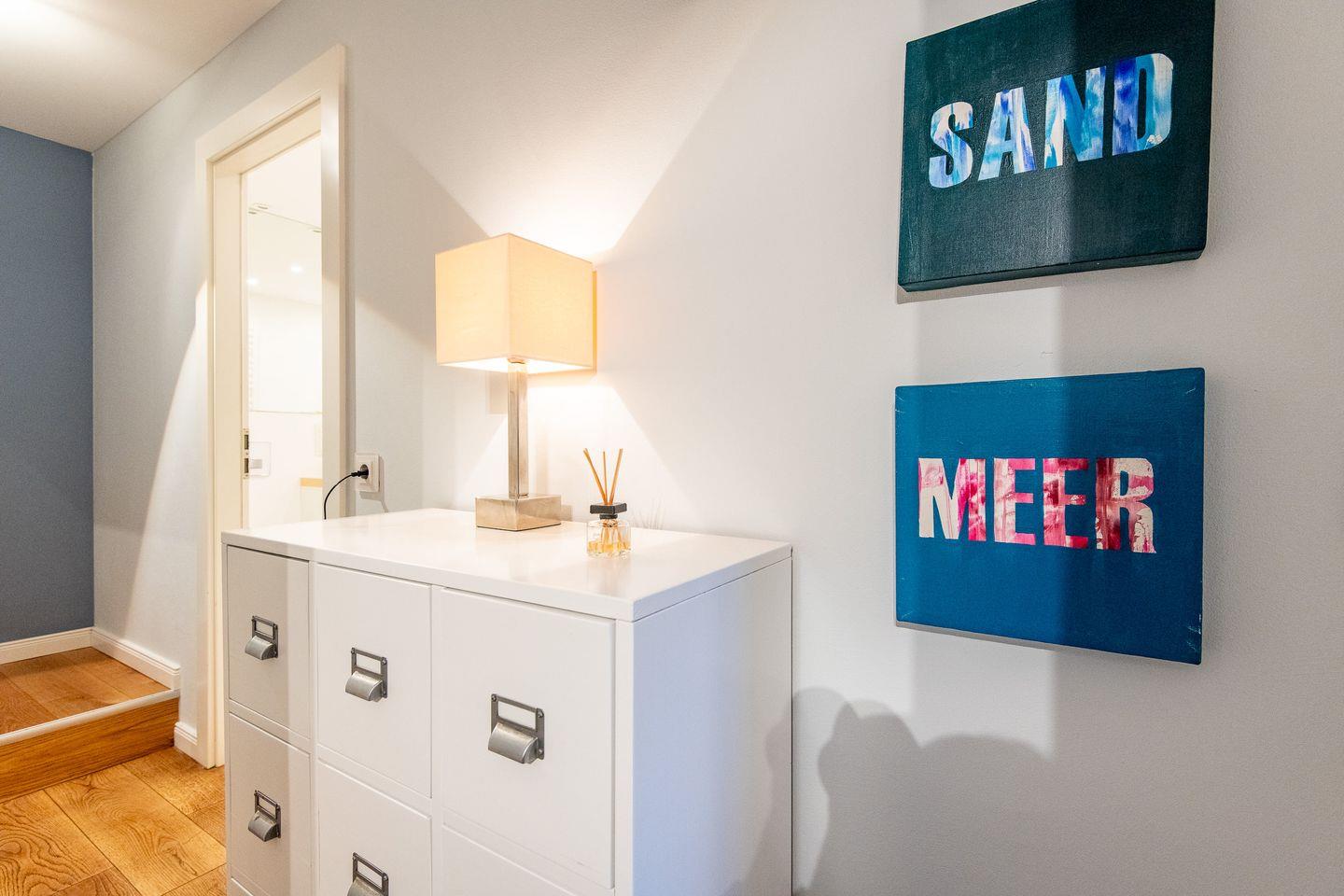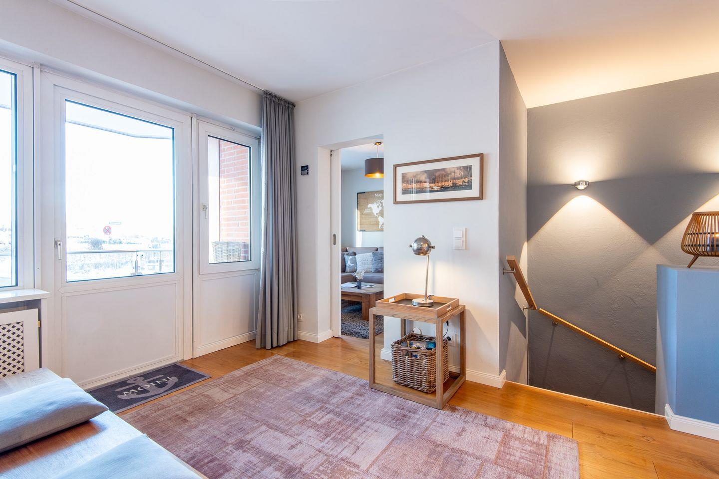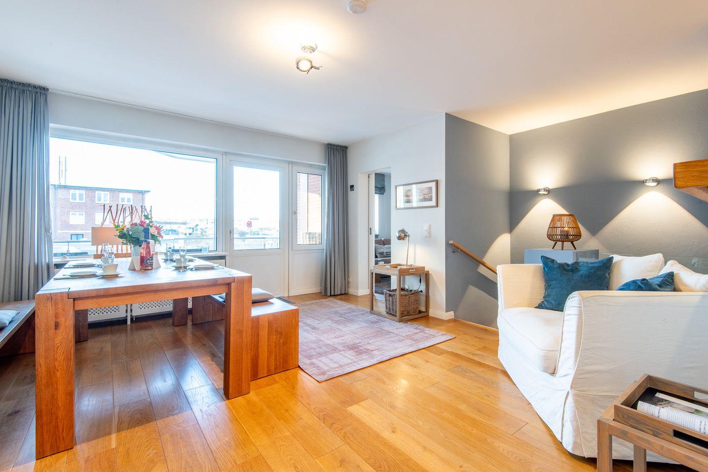 Moderne 3-Zimmer-Ferienwohnung auf zwei Ebenen in Westerland, nur 500 m vom Strand entfernt, mit Terrasse und kostenlosem Parkplatz.