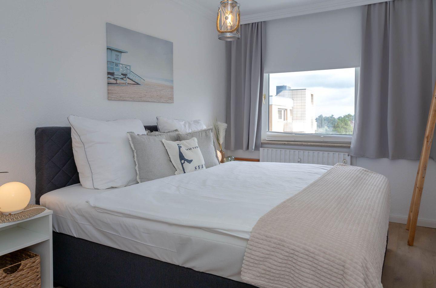 Zur City sind es etwa 10 Gehminuten über die Promenade am Wasser entlang. Zur Wohnung gehört ein fester PKW-Abstellplatz in der Nähe des Hauses.