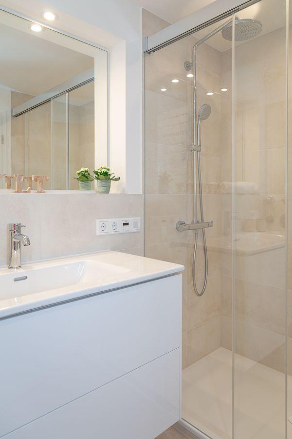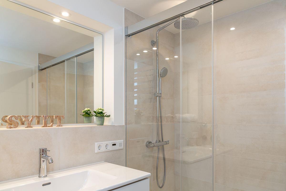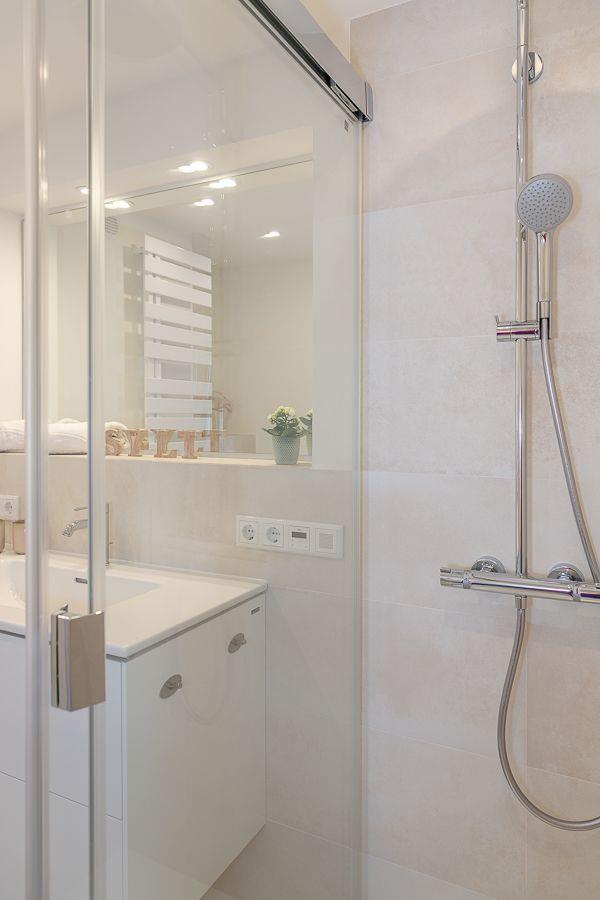Das Natursteinbad mit großer Regendusche und Fußbodenheizung bietet Ihnen eine eigene kleine Wohlfühloase, in der zudem ein Radio eingebaut ist, welches zu Ihrer Entspannung beitragen wird.