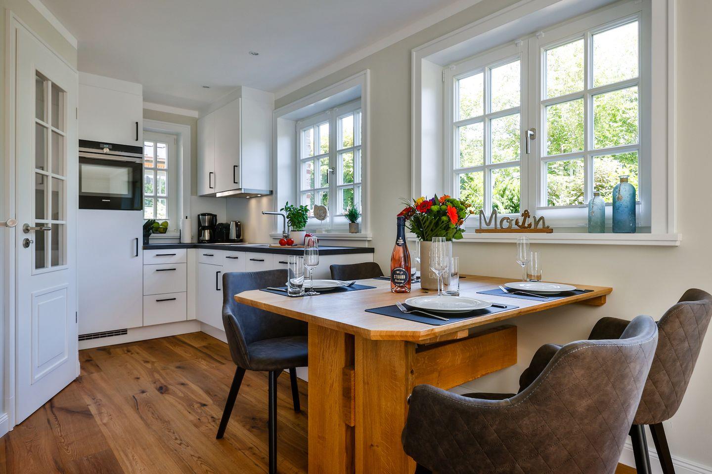 Die offene Küche ist hochwertig ausgestattet und verfügt über einen Geschirrspüler und alle weiteren modernen Annehmlichkeiten, die Sie für eine bequeme Selbstversorgung benötigen.