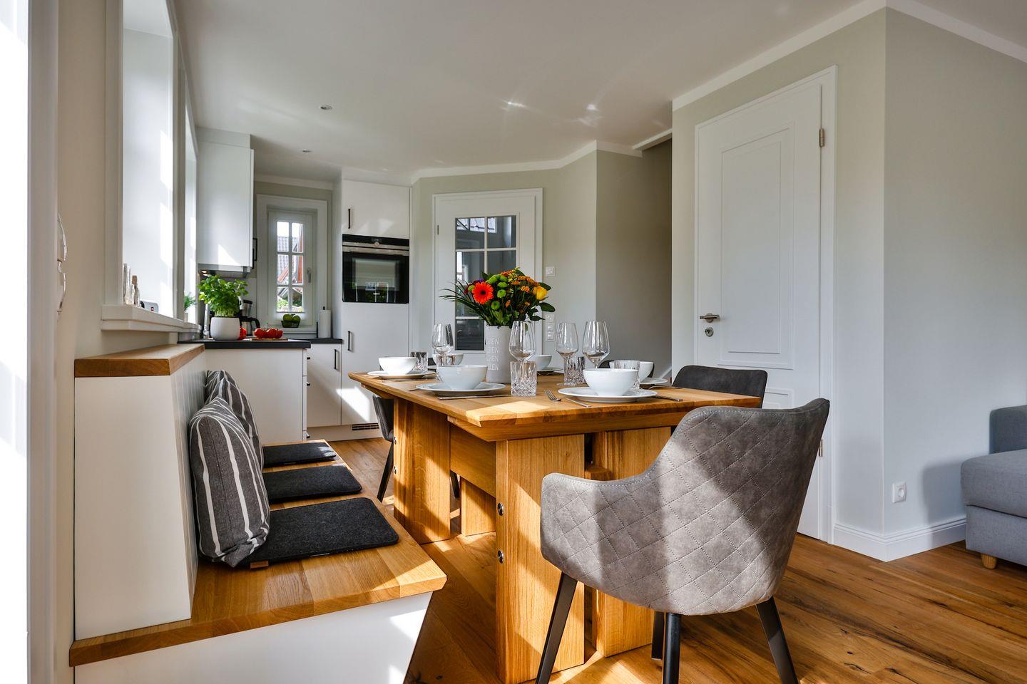 Die offene Küche ist voll ausgestattet und lässt mit einem Geschirrspüler und modernen Geräten keine Wünsche offen. Hier können Sie Ihre Lieblingsgerichte bequem zubereiten und genießen.