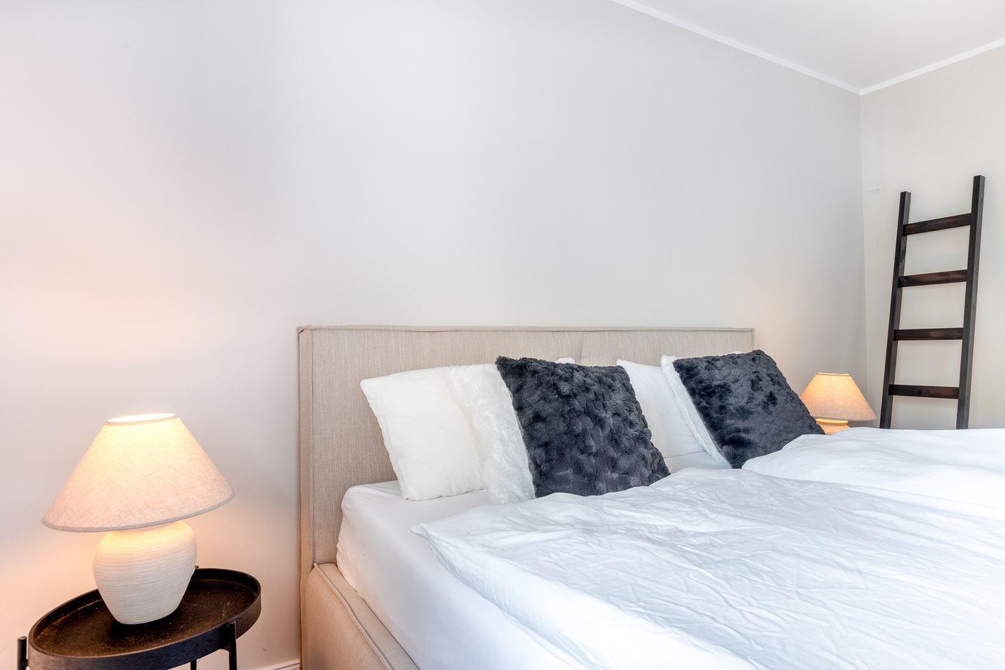 Das Obergeschoss beherbergt ein weiteres einladendes Schlafzimmer, ebenfalls mit einem gemütlichen Doppelbett ausgestattet.
