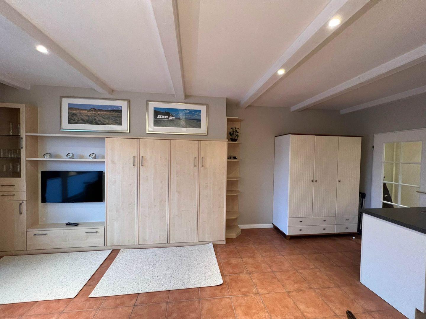 Das 1-Zimmer-Ferienappartement liegt superzentral in der lebendigen Inselhauptstadt Westerland, aber etwas abseits des ganz wilden Getümmels. Zum Supermarkt um die Ecke und zum Bäcker nebenan ist es jeweils nur ein Katzensprung, auch der Strand, der Bahnhof und Busse sind zu Fuß nur wenigen Minuten entfernt. Die „Robbe“ ist umsichtig und mit Sinn für alles Nötige ausgestattet, rund 37 Quadratmeter groß und auch noch rollatorfreundlich. Ein eigener Parkplatz, das ist nicht unwichtig so zentral, wenn man gern mit dem Auto anreist, gehört auch noch dazu.