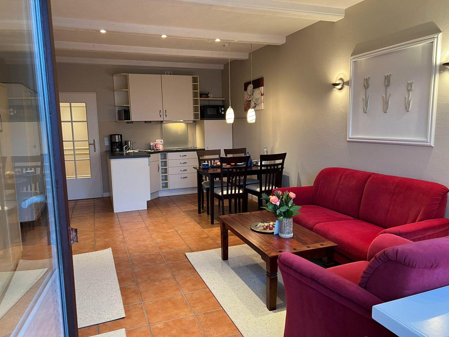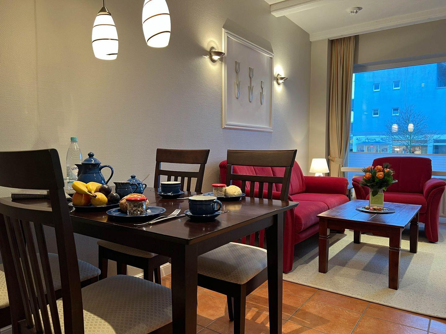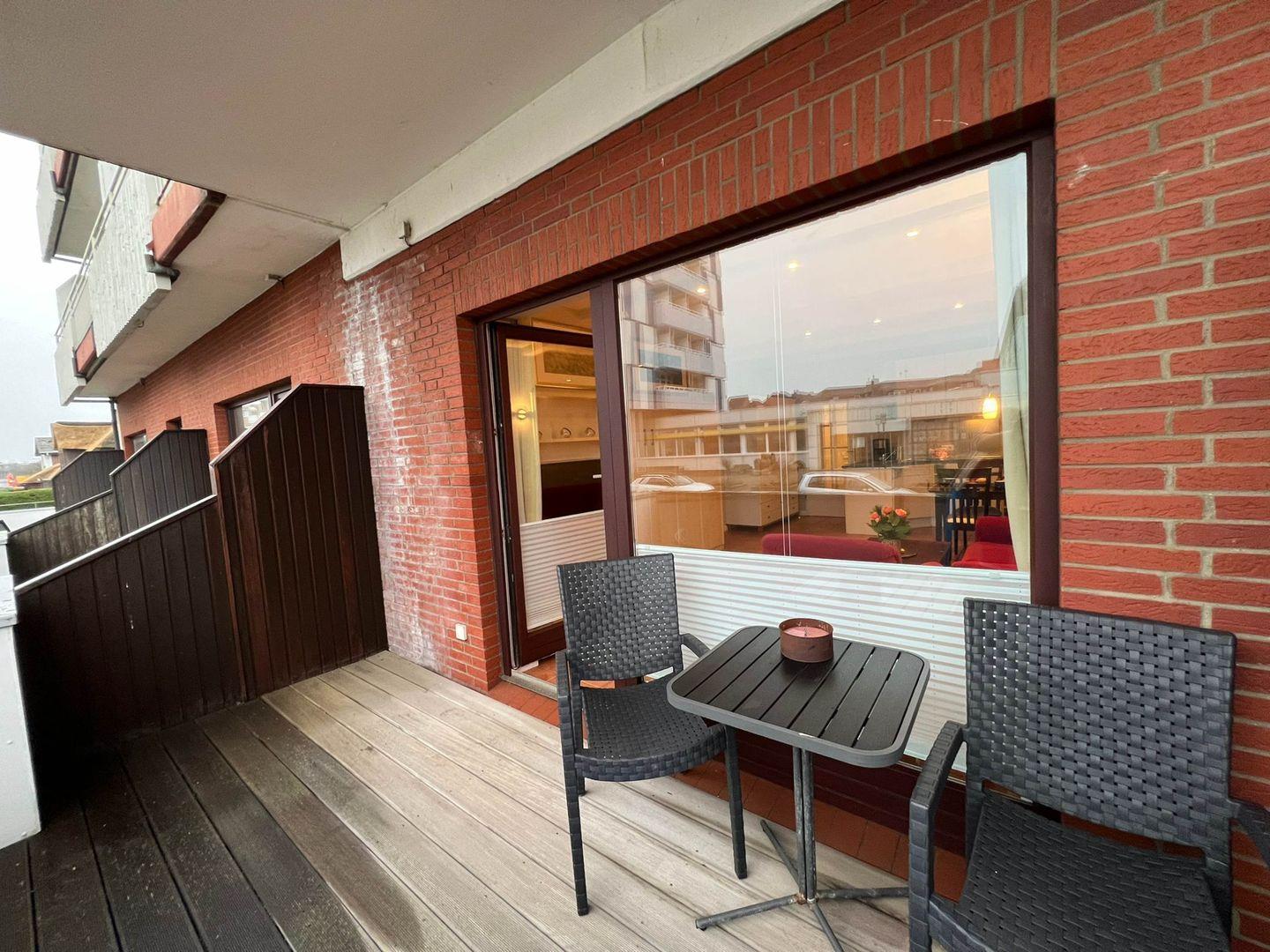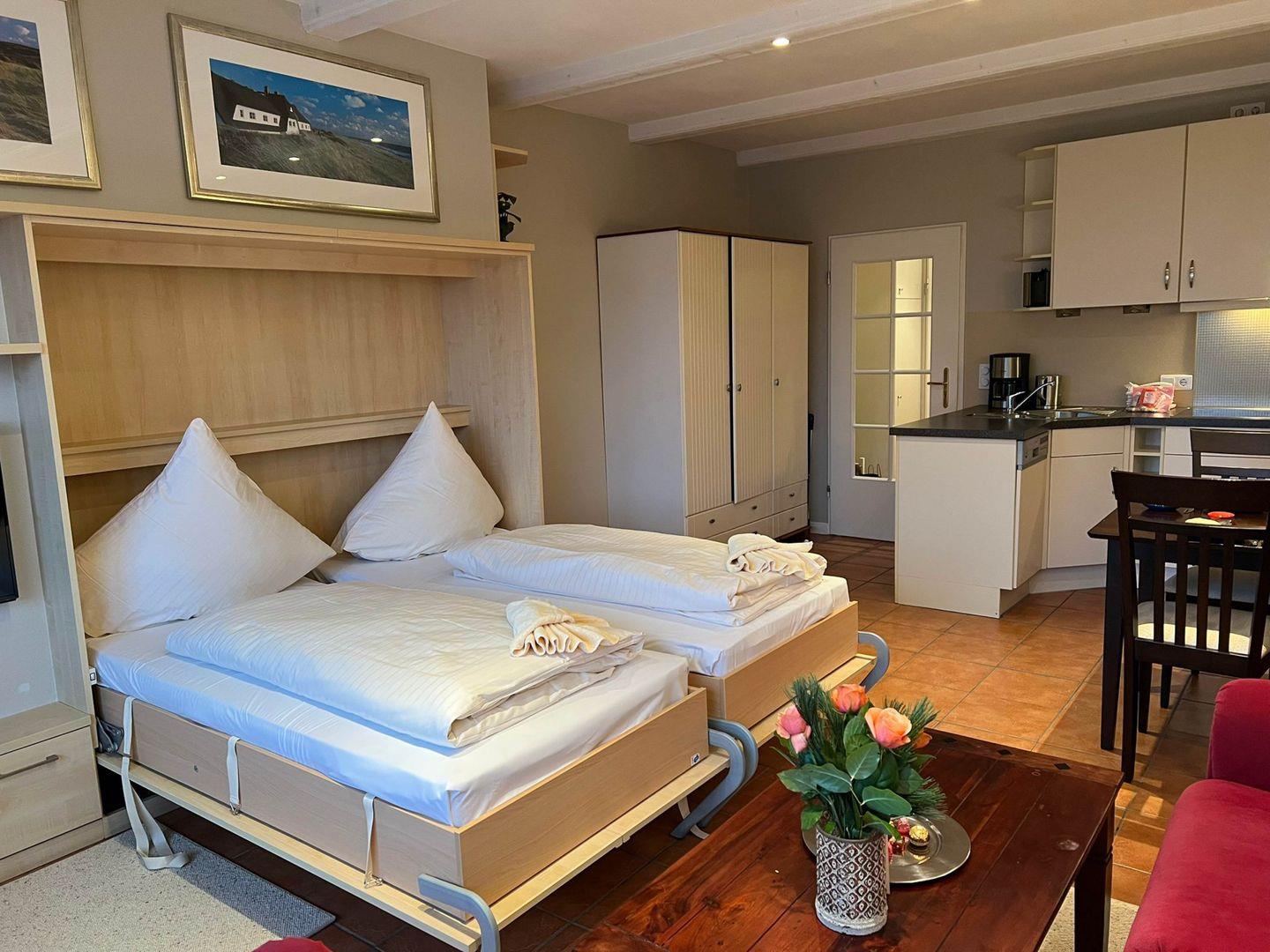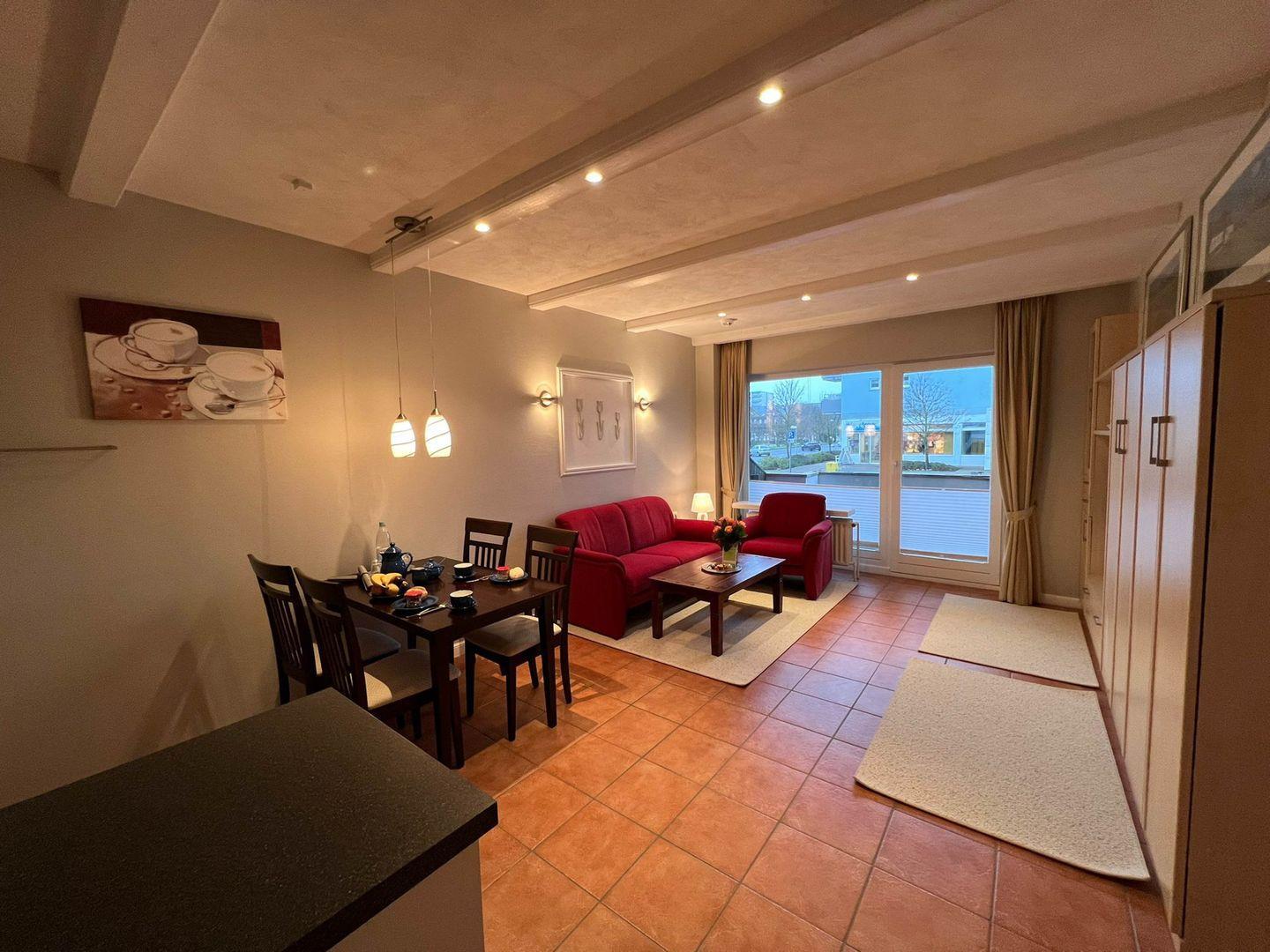 Charmantes 1-Zimmer-Ferienappartement "Robbe" in Westerland mit Westterrasse, Schwimmbad und Sauna der Hausgemeinschaft.