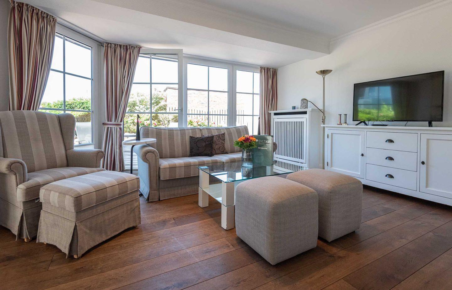 Ferienwohnung im Landhausstil mit 2 Zimmern auf ca. 60 m², für max. 4 Personen. Hier erwartet Sie ein hell eingerichtetes Feriendomizil in reiner Erdgeschosslage in ruhiger und dennoch zentraler, strandnaher Lage von Westerland.