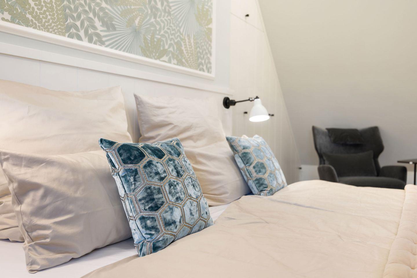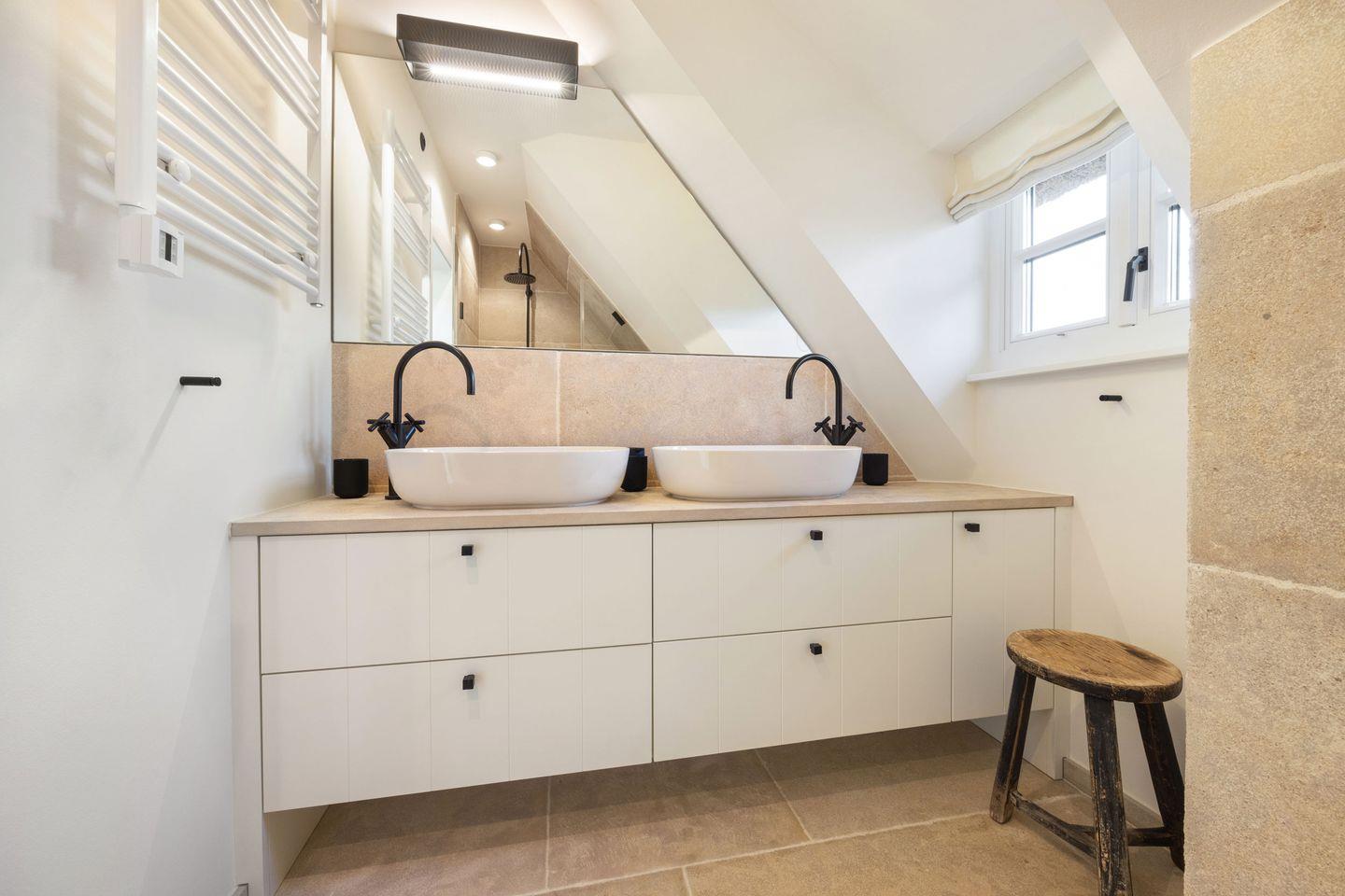 Alle drei Schlafzimmer sind mit luxuriösen Boxspring-Doppelbetten (180x200 cm) und Einbauschränken ausgestattet und bieten höchsten Schlafkomfort. Jedes Schlafzimmer verfügt über ein angrenzendes Badezimmer, das mit Tageslicht, Fußbodenheizung und Föhn ausgestattet ist und Ihnen ein kleines Wellness-Erlebnis bietet. Die Bäder verfügen über bodengleiche Duschen und eine Badewanne – perfekt für entspannte Momente.