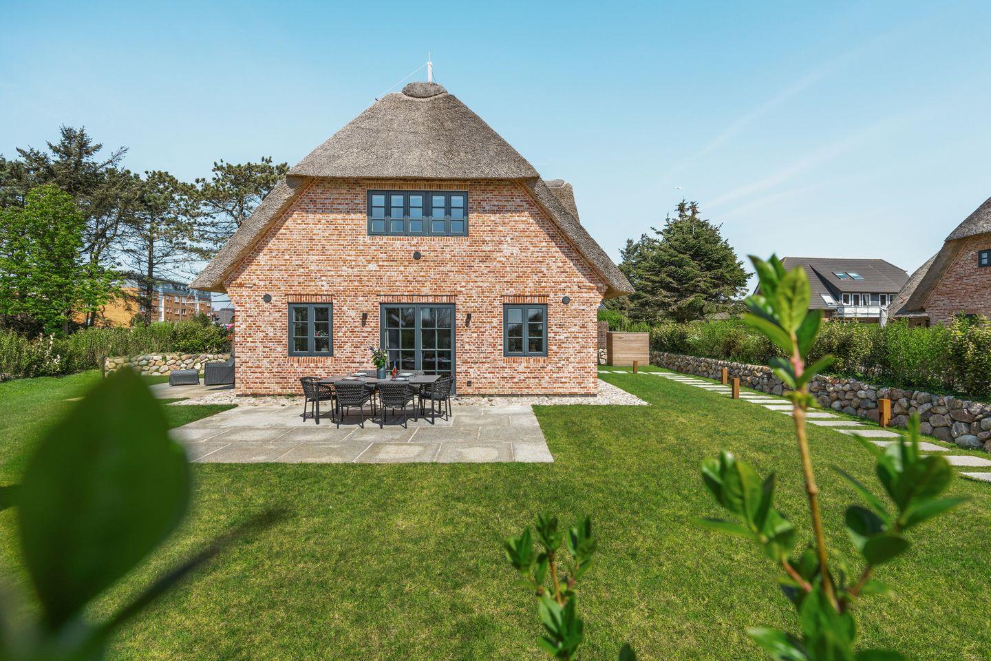 Luxuriöse Doppelhaushälfte unter Reet in Westerland mit Sauna, Garten und moderner Ausstattung, nur 300 m vom Strand entfernt.