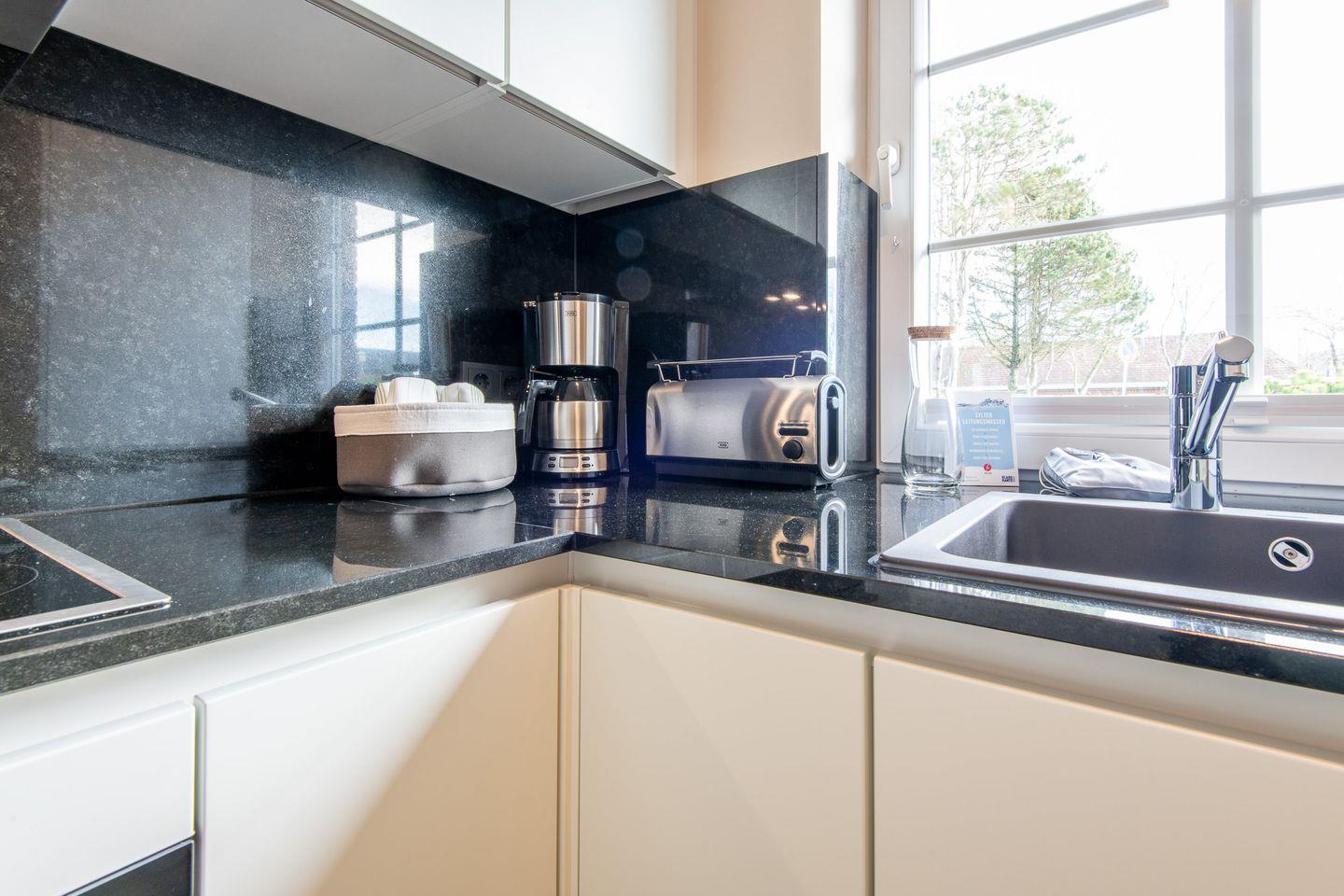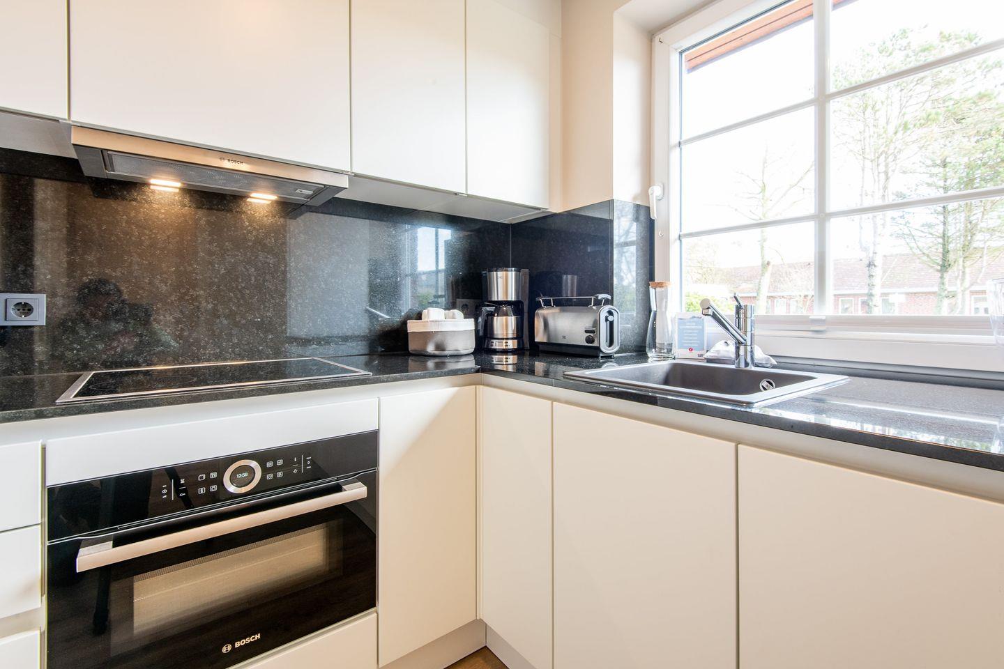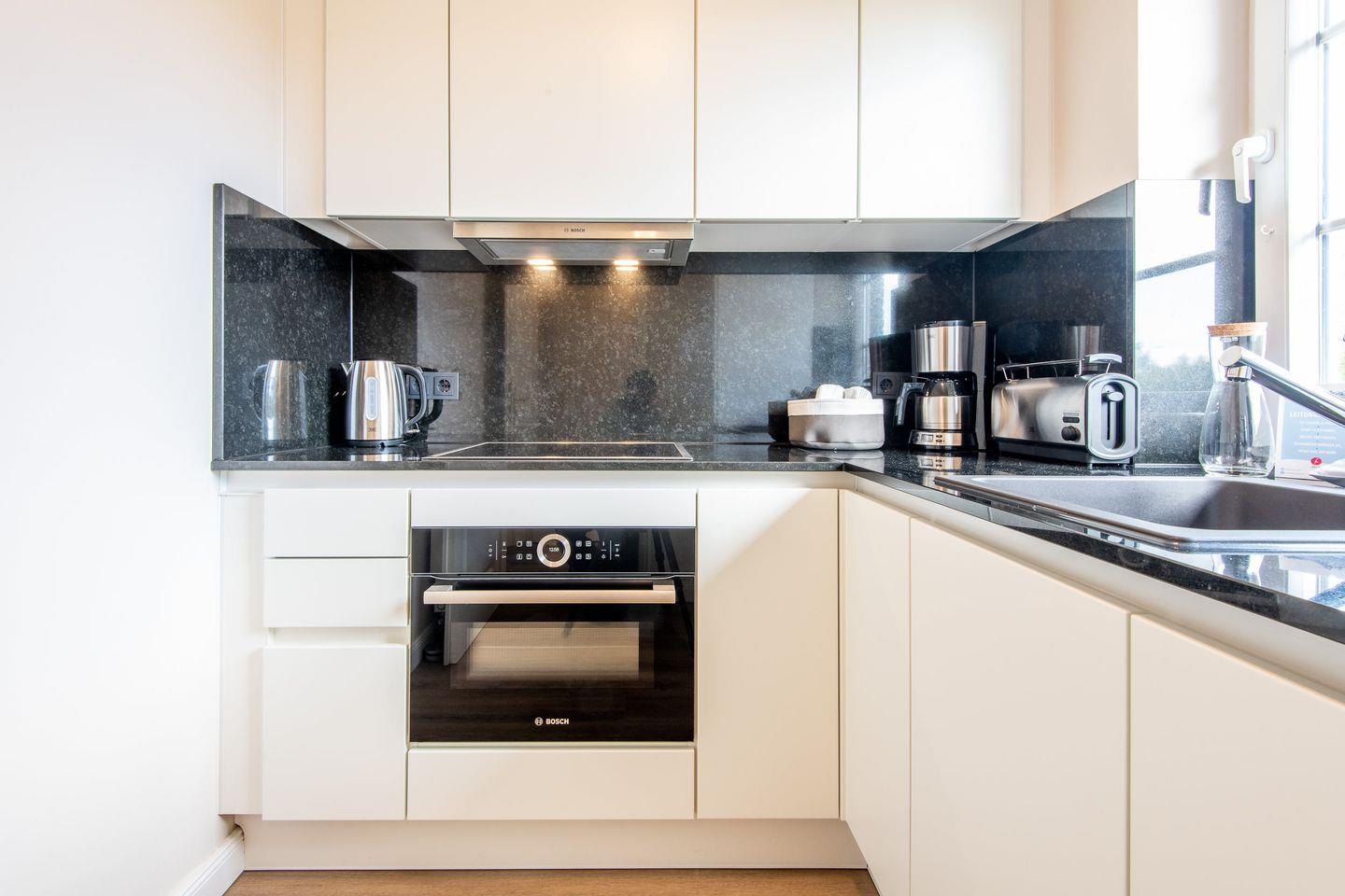 Die separate Küche ist voll ausgestattet und bietet Ihnen alles, was Sie für die Zubereitung von Mahlzeiten benötigen. Ein Cerankochfeld, Geschirrspüler und eine Filterkaffeemaschine machen das Kochen zu einem Vergnügen und sorgen für modernen Komfort.