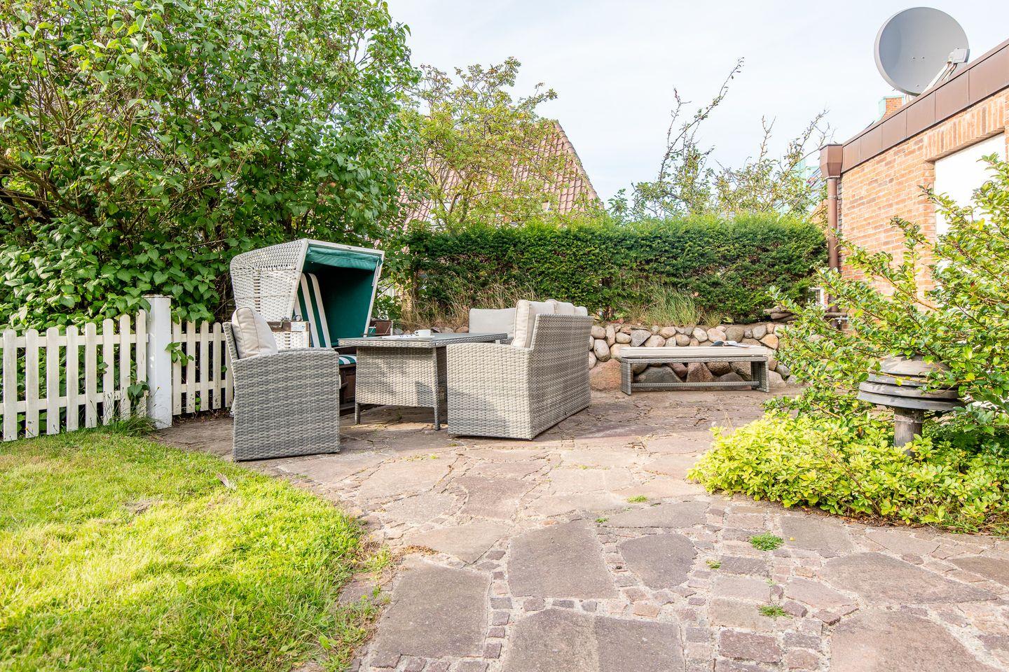 Moderne 4-Zimmer-Ferienwohnung mit Terrasse und Garten in Westerland, ideal für bis zu 6 Personen nahe Strand und Stadtzentrum.