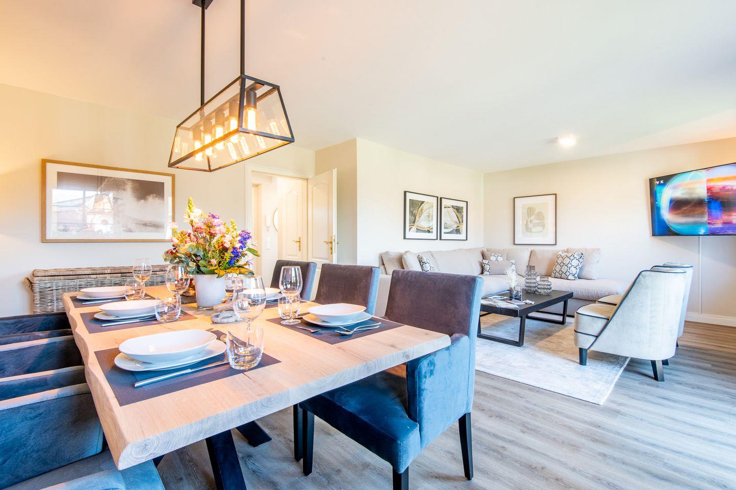 Genießen Sie Komfort und Luxus in dieser modernen 4-Zimmer-Ferienwohnung mit ca. 100 m² auf zwei Ebenen, die Platz für bis zu 6 Personen bietet. In strand- und innenstadtnaher Lage in Westerland auf Sylt gelegen, bietet dieses Domizil eine perfekte Balance zwischen Entspannung und urbanem Leben.