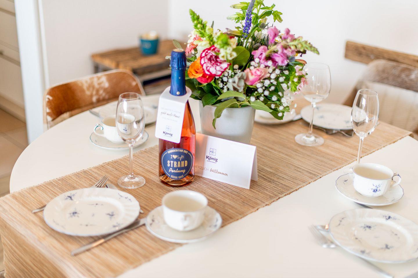 Der lichtdurchflutete Wohn- und Essbereich führt direkt auf die große Dachterrasse und ist mit gemütlichem Mobiliar ausgestattet. Hier können Sie den Sonnenuntergang und den fantastischen Blick auf die Nordsee in vollen Zügen genießen. Die Terrasse ist sowohl vom Wohnzimmer als auch von den Schlafzimmern aus zugänglich und bietet damit allen Gästen ein unvergleichliches Urlaubserlebnis.