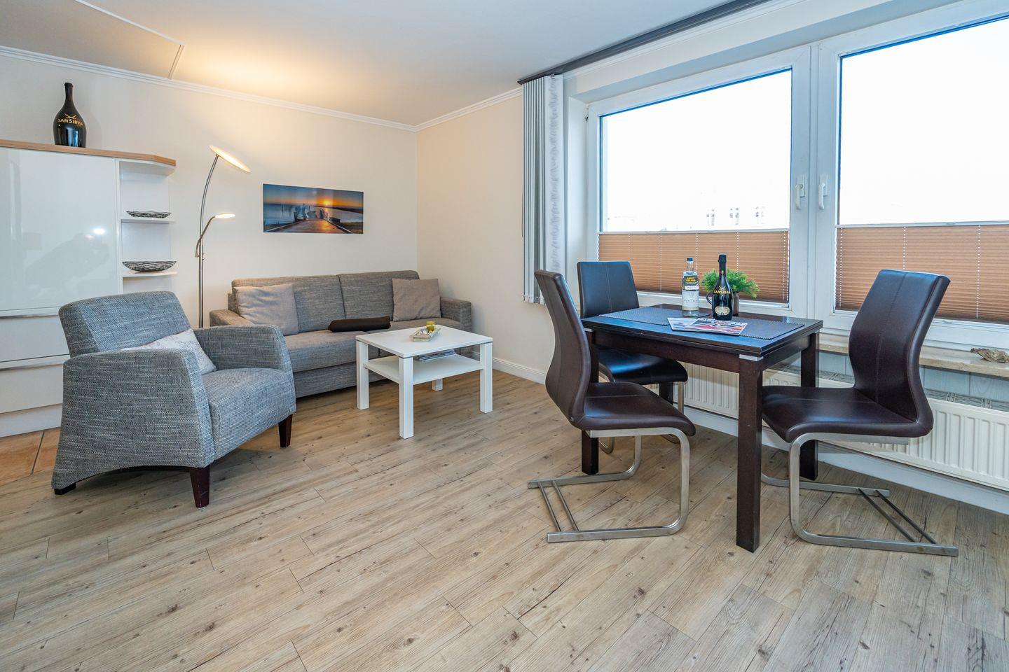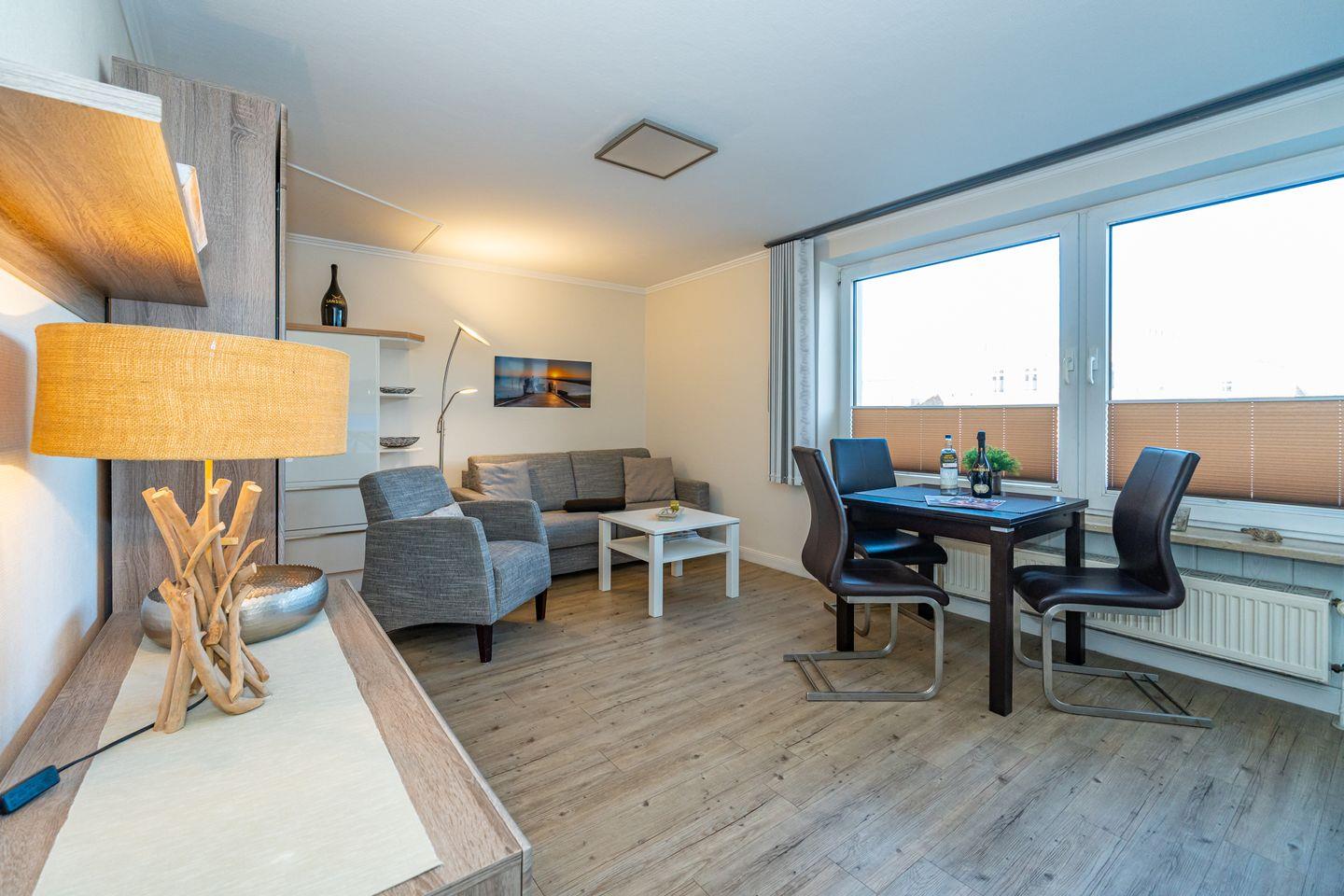 Zentrale 2-Zimmer-Ferienwohnung mit Balkon, Parkplatz und nur 200 Meter zum Strand in Westerland.