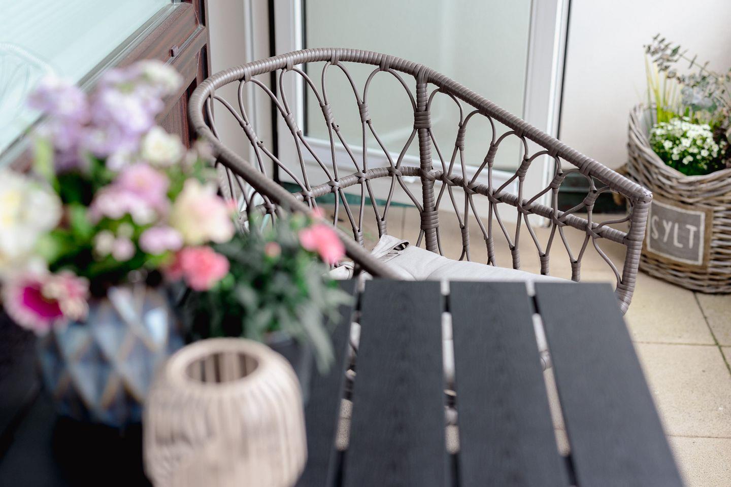 Morgens ein Kaffee auf dem geschützten Balkon, abends ein Glas Wein bei Nordseeluft – hier lässt es sich wunderbar entspannen.