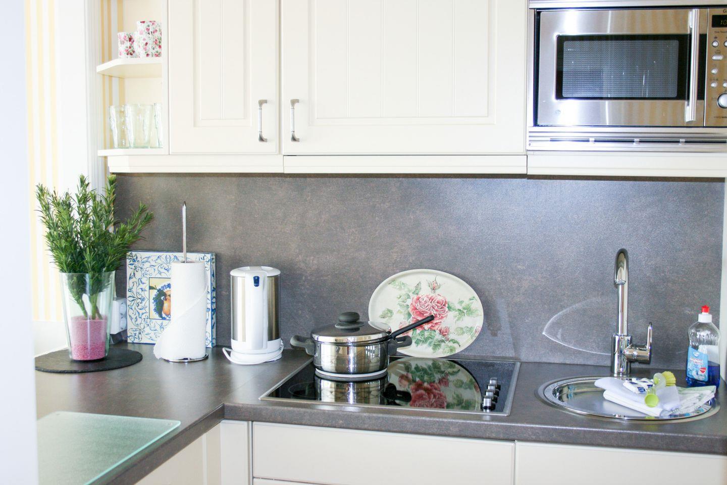 Cerankochfeld, Geschirrspüler, Mikrowelle DuschbadOstbalkon mit Morgensonne (