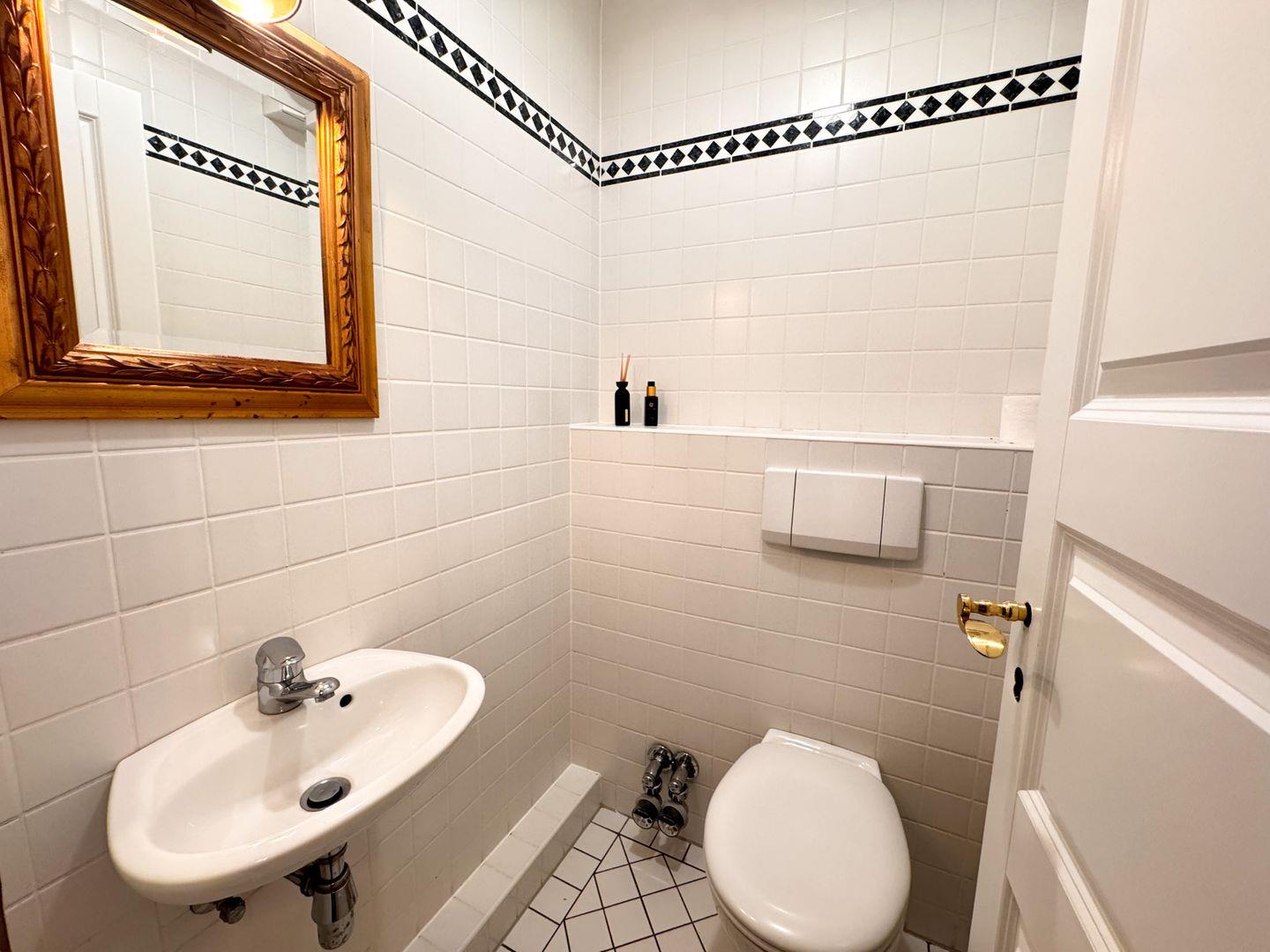 Das Appartement verfügt über ein Badezimmer mit Dusche und Wanne. Hygienische Annehmlichkeiten wie ein Waschbecken, WC, Spiegel und ein Haartrockner sind selbstverständlich vorhanden. Ein separates Gäste-WC steigert den Komfort bei einem Aufenthalt mit mehreren Personen. Zur weiteren Ausstattung gehören ein Abfalleimer, Fenster mit Sichtschutz, eine Garderobe sowie Rauchmelder, was für zusätzliche Sicherheit sorgt.