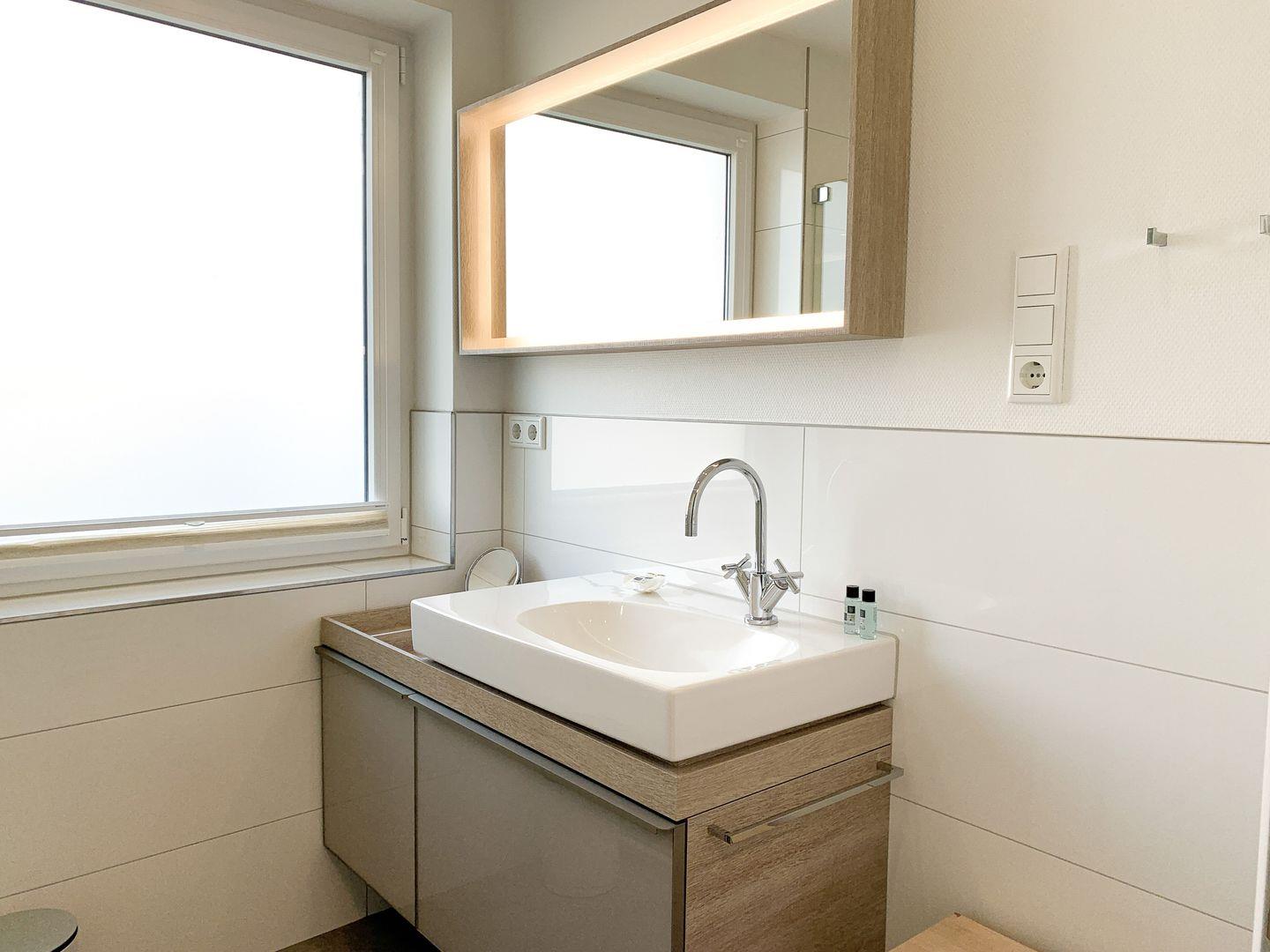 Schlafzimmer ist mit einem Flat-TV ausgestattet.Das Duschbad ist modern und mit