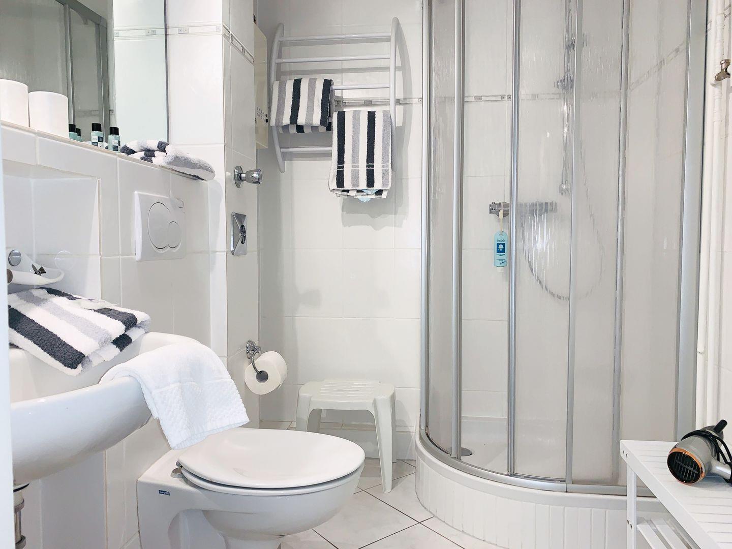 zu sorgen.Das Badezimmer verfügt über eine Dusche sowie Waschbecken und WC.Der
