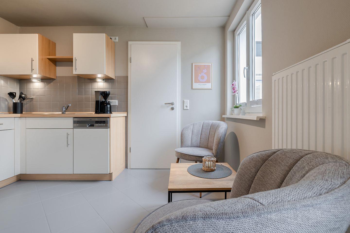 Komfortables Appartement Auster in bester Lage von Westerland mit Gartenterrasse, moderner Küche und Nähe zum Strand.