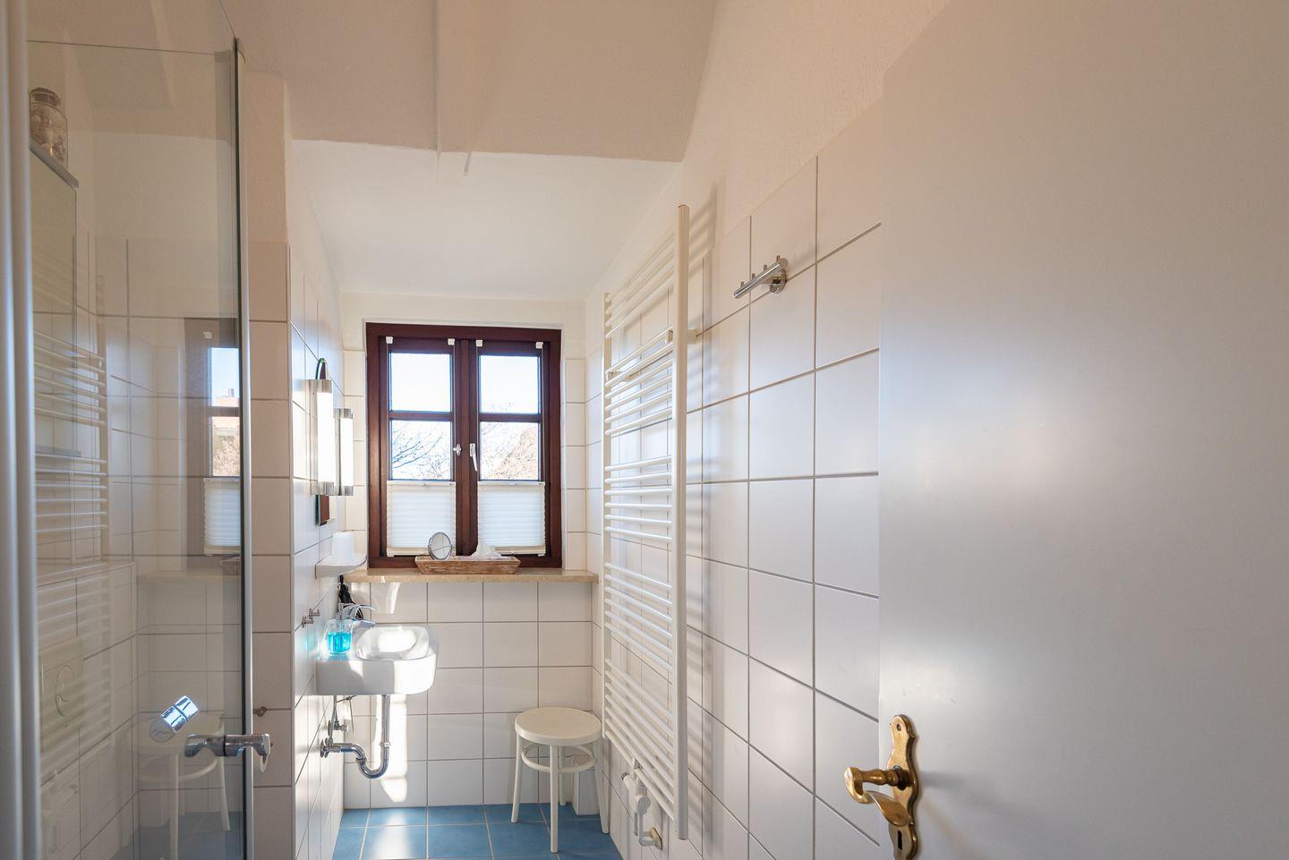 Badezimmer 1: Helles Duschbad mit Fenster.