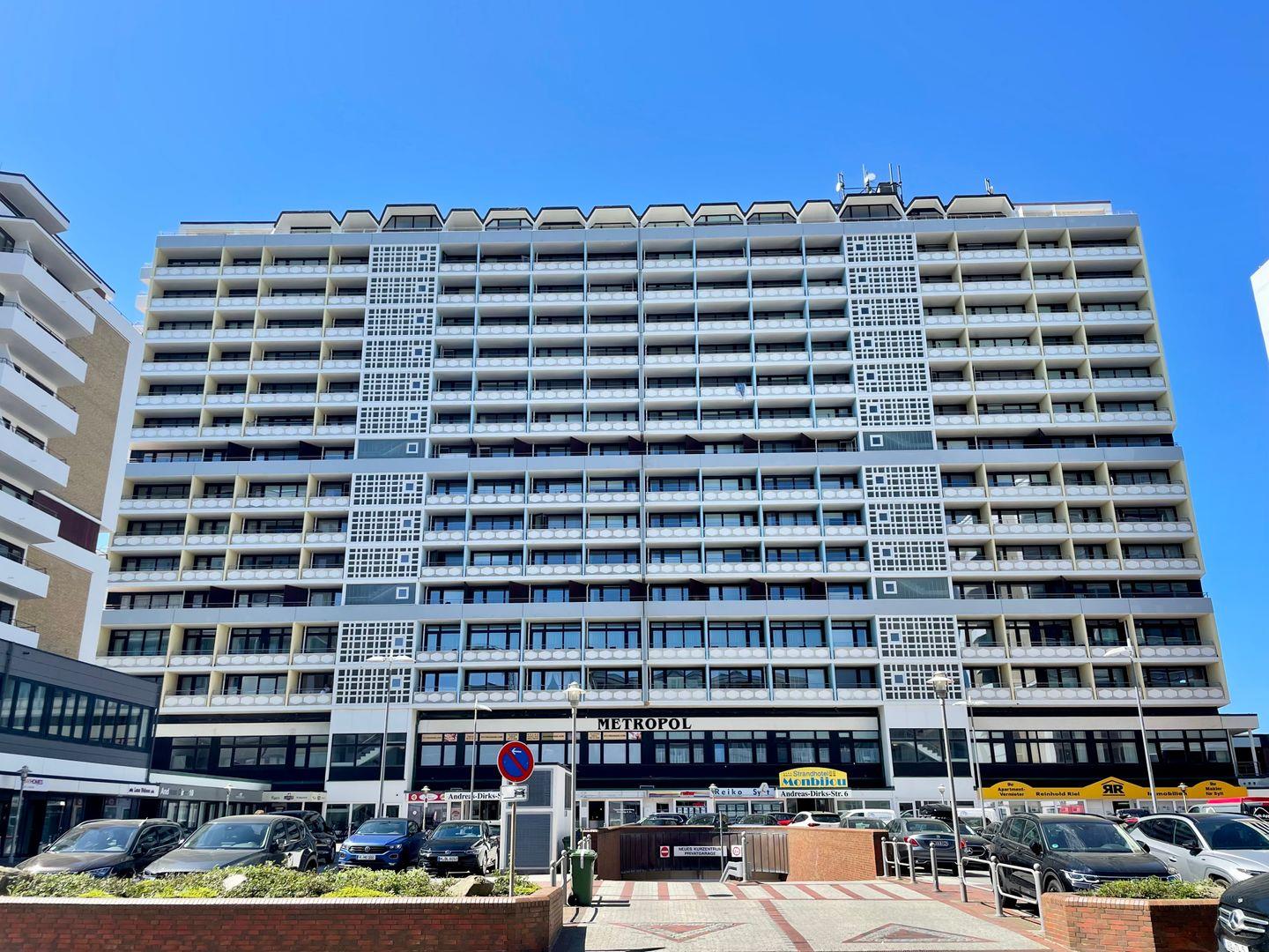 Dieses strandnahe Einzimmerapartment für bis zu 2 Personen befindet sich im 5. Stock und bietet Ihnen eine gute Ausstattung in direkter Stadt- und Strandlage, unweit entfernt vom Strandübergang der Westerländer Promenade. Die Küchenzeile ist gut ausgestattet und offen zur restlichen Wohnung. Der angrenzende Wohn- und Schlafbereich mit Doppelbett und Essecke lädt zur Entspannung ein. Das Duschbad ist mit einem Haartrockner ausgestattet. Nutzen Sie gerne den sonnendurchfluteten Frühstücksbalkon. Kostenloses WLAN sowie ein Fahrstuhl sind vorhanden. Haustiere sind willkommen.