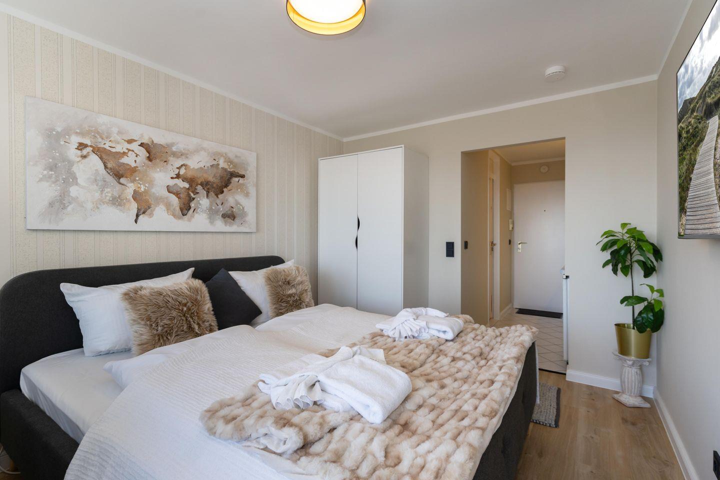 Modernes 1-Zimmer-Apartment in Westerland mit Balkon, WLAN und strandnaher Lage für erholsame Tage zu zweit.