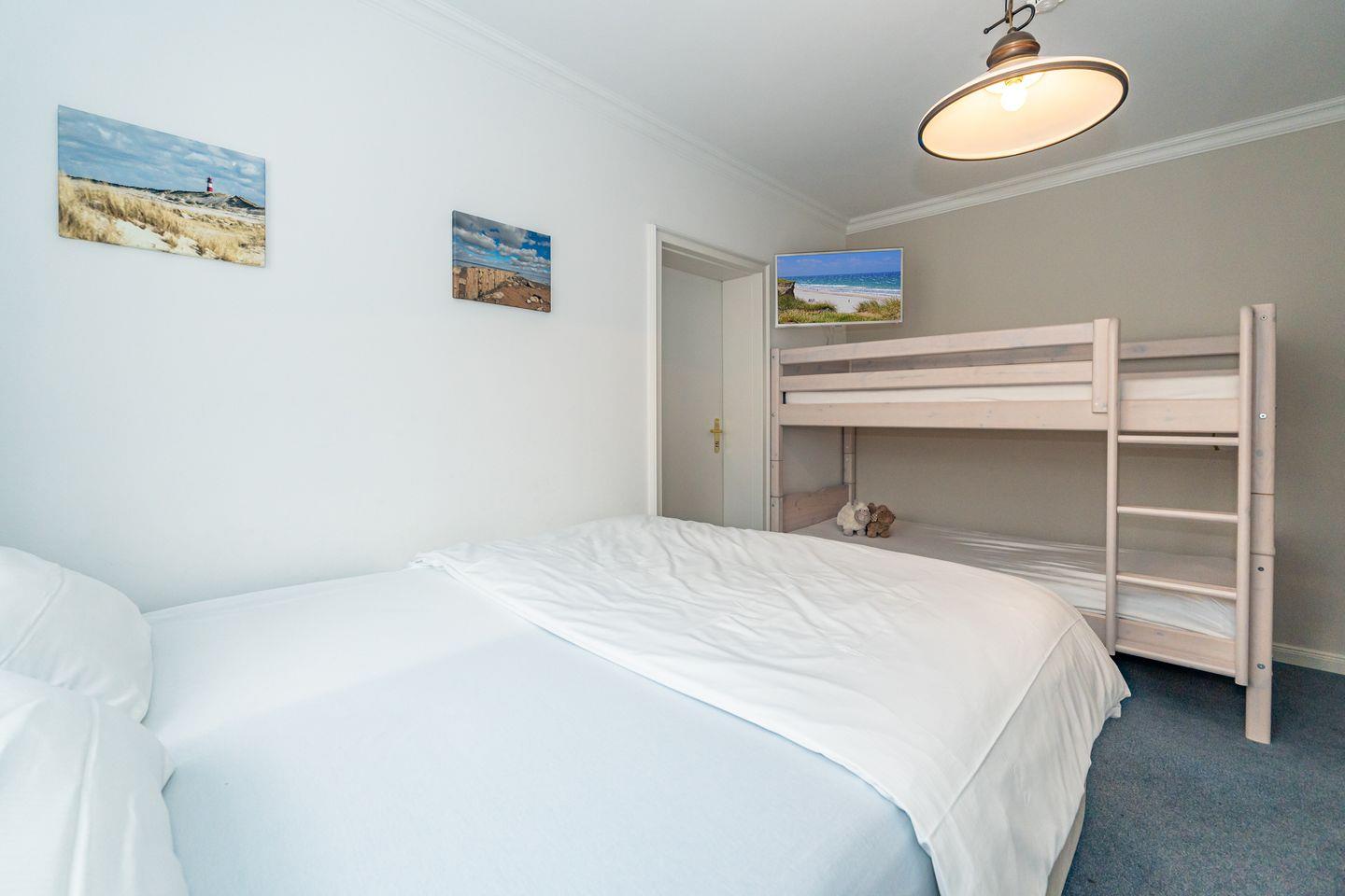 Mitten im Zentrum von Westerland auf 58 qm im 1 Stock begrüßt Sie die Ferienwohnung Syltglück. Die Ferienwohnung ist über einen Fahrstuhl zu erreichen. Ein gemütliches Wohnzimmer mit einem Schlafsofa, sowie einer Essecke und offener Küche mit allem ausgestattet um köstliche Mahlzeiten zuzubereiten gehört selbstverständlich dazu. Ausreichend Schränke mit reichlich Platz für Ihre Garderobe stehen Ihnen zur Verfügung. Im Schlafzimmer befindet sich ein Doppelbett, ein Etagenbett und ein TV. In einem der Badezimmer befindet sich eine Dusche, ein WC und ein Handtuchtrockner. Im zweiten Badezimmer befindet sich eine Badewanne, ein WC und ein Handtuchtrockner. Ein besonderes Highlight ist der kleine Balkon mit Blick auf die berühmte Friedrichstraße, mit zahlreichen Restaurants und Geschäften, nur wenige Gehminuten von der Promenade und dem Strand entfernt. Der Bahnhof Westerlands liegt ebenfalls in unmittelbarer Nähe.