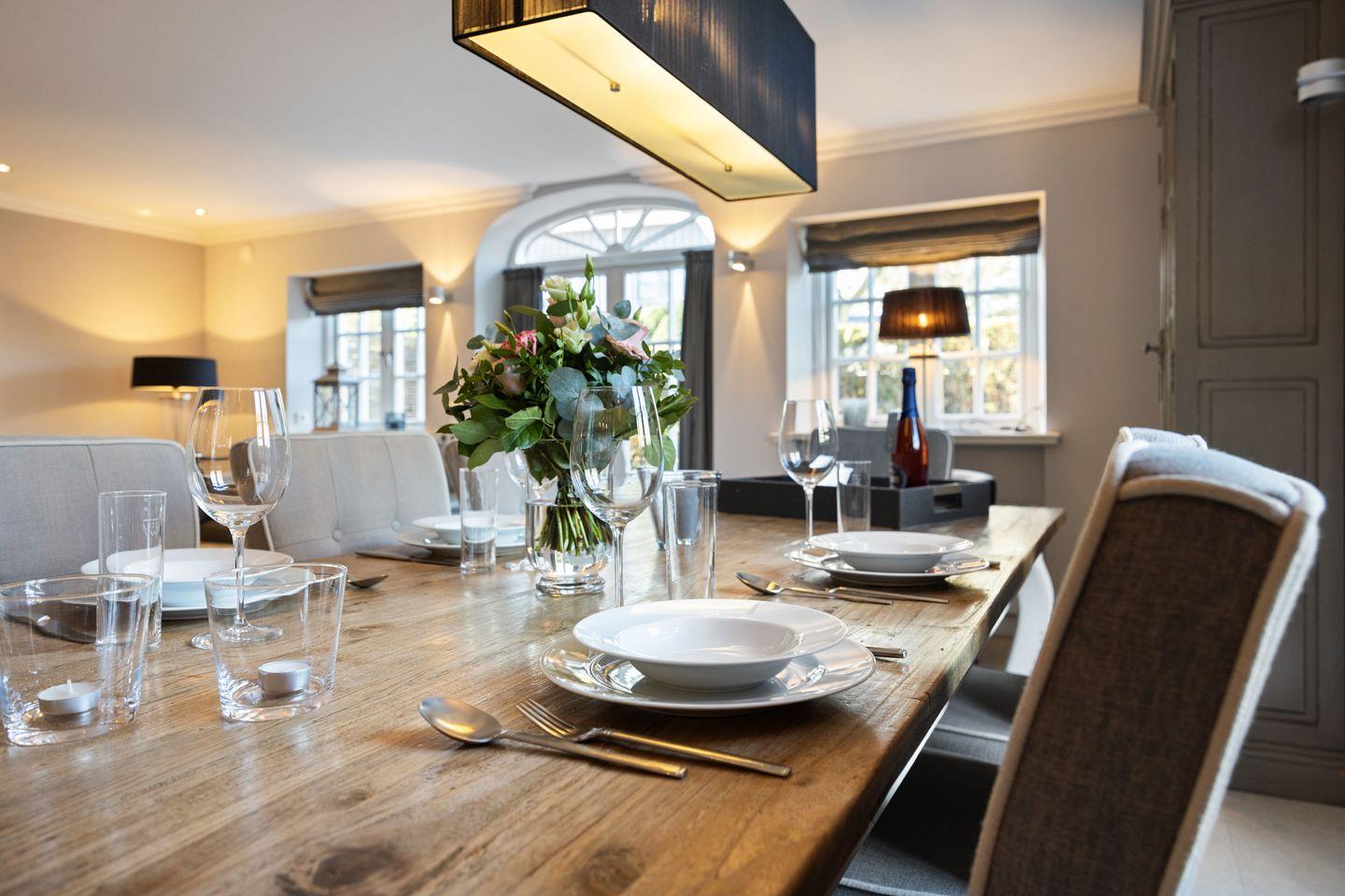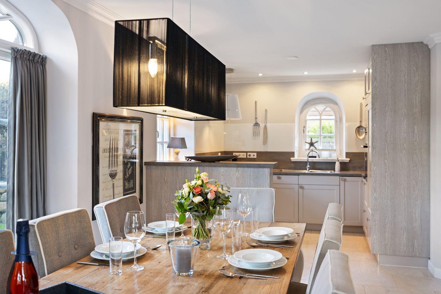 Die moderne, offene Küche ist komplett ausgestattet und bietet alles, was Sie für das Zubereiten gemeinsamer Mahlzeiten benötigen. Von hochwertigen Geräten bis hin zu umfangreichen Küchenutensilien – hier bleiben keine Wünsche offen.
