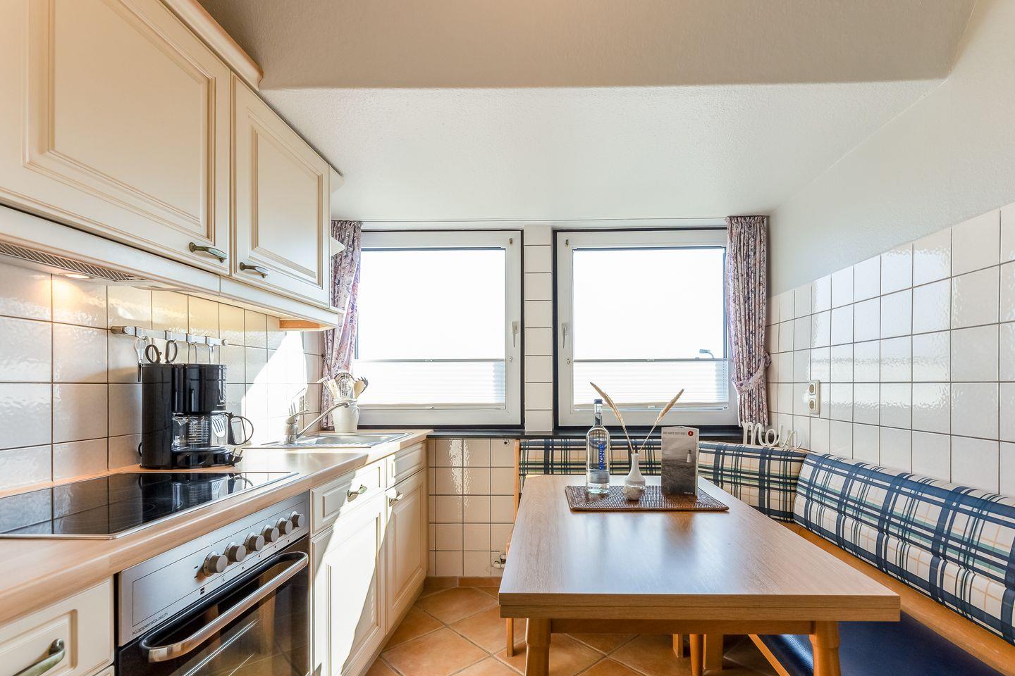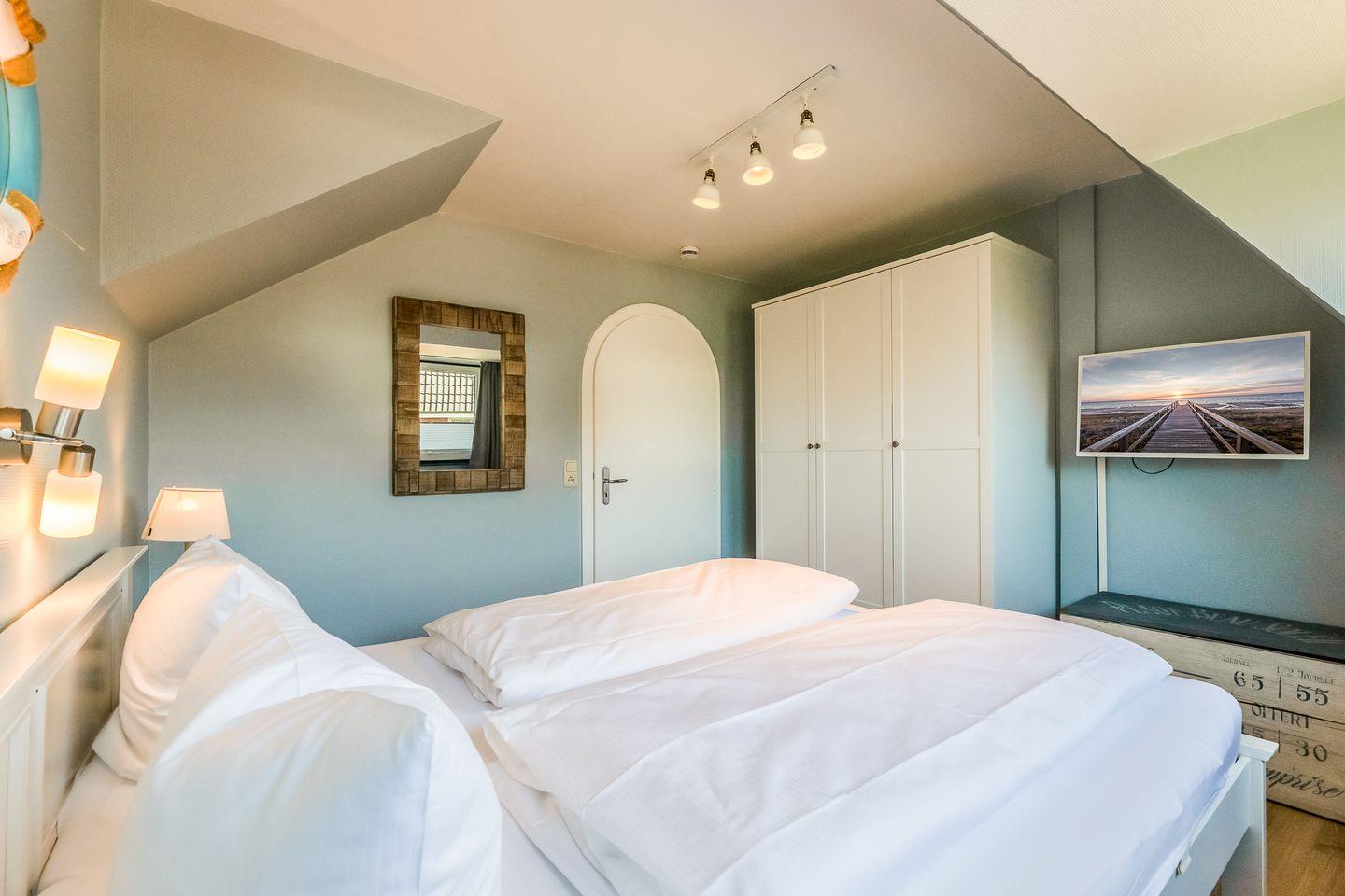 Ein langer Flur, runde Türbögen, ein schicker Fußboden, frische Farben und viele maritime Accessoires. Hier kann man Kurs auf Urlaub nehmen. Sei es im Wohnzimmer auf der großen und fabelhaft gemütlichen Couch, die "ruhige See" verspricht oder in den beiden aquafarbenen Schlafzimmern mit ihren bequemen Doppelbetten, wo man über Nacht vor Anker gehen kann. Urig ist hier auch die Kombüse, die bestens ausgestattet ist und mit ihrer Sitzbank zum gemütlichen Beisammensein einlädt. Das Badezimmer ist komplett in Weiß gehalten und lädt mit seiner Badewanne zum Abtauchen ein.