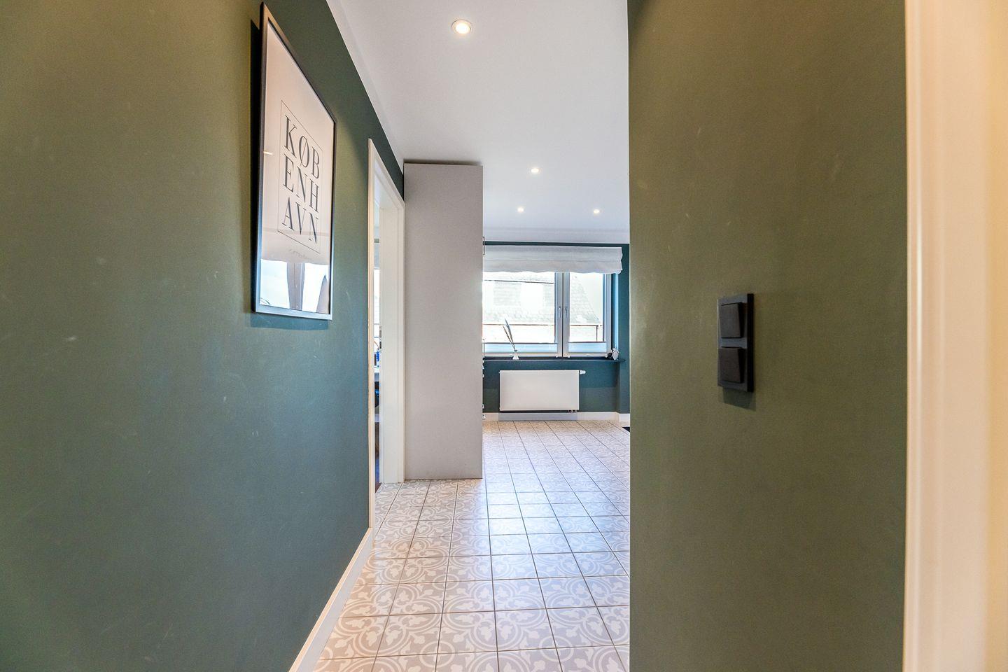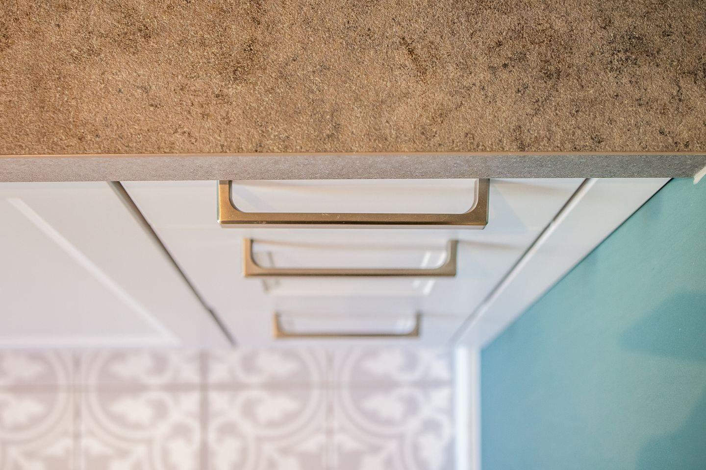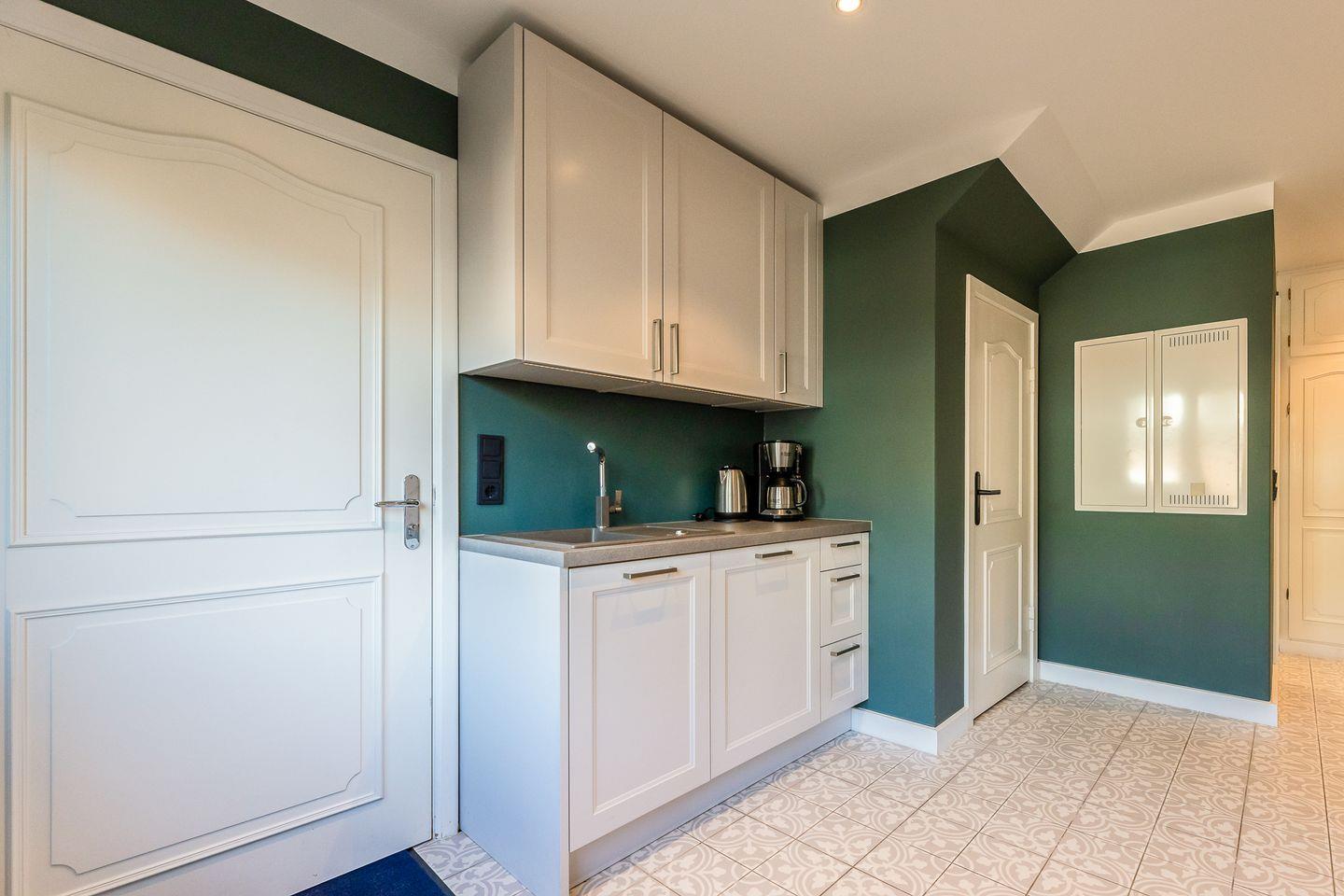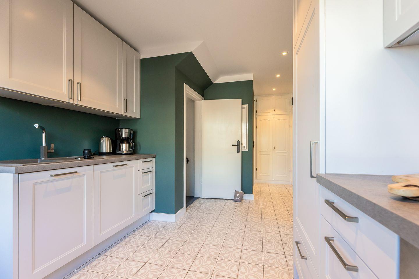 Dieses Appartement strahlt Ruhe und schlichte Klarheit aus. Hier treffen hochwertige Möbel auf farbige Wände und jede Menge Liebe zum Detail. In der "guten Stube" ergeben das gemütliche Ecksofa und der Esstisch ein harmonisches Ganzes. Die Küche hat sich direkt am Eingang platziert und besticht durch ihre klare Formsprache, die durch die grünen Wände und die verspielten Bodenfliesen wunderbar gebrochen wird.