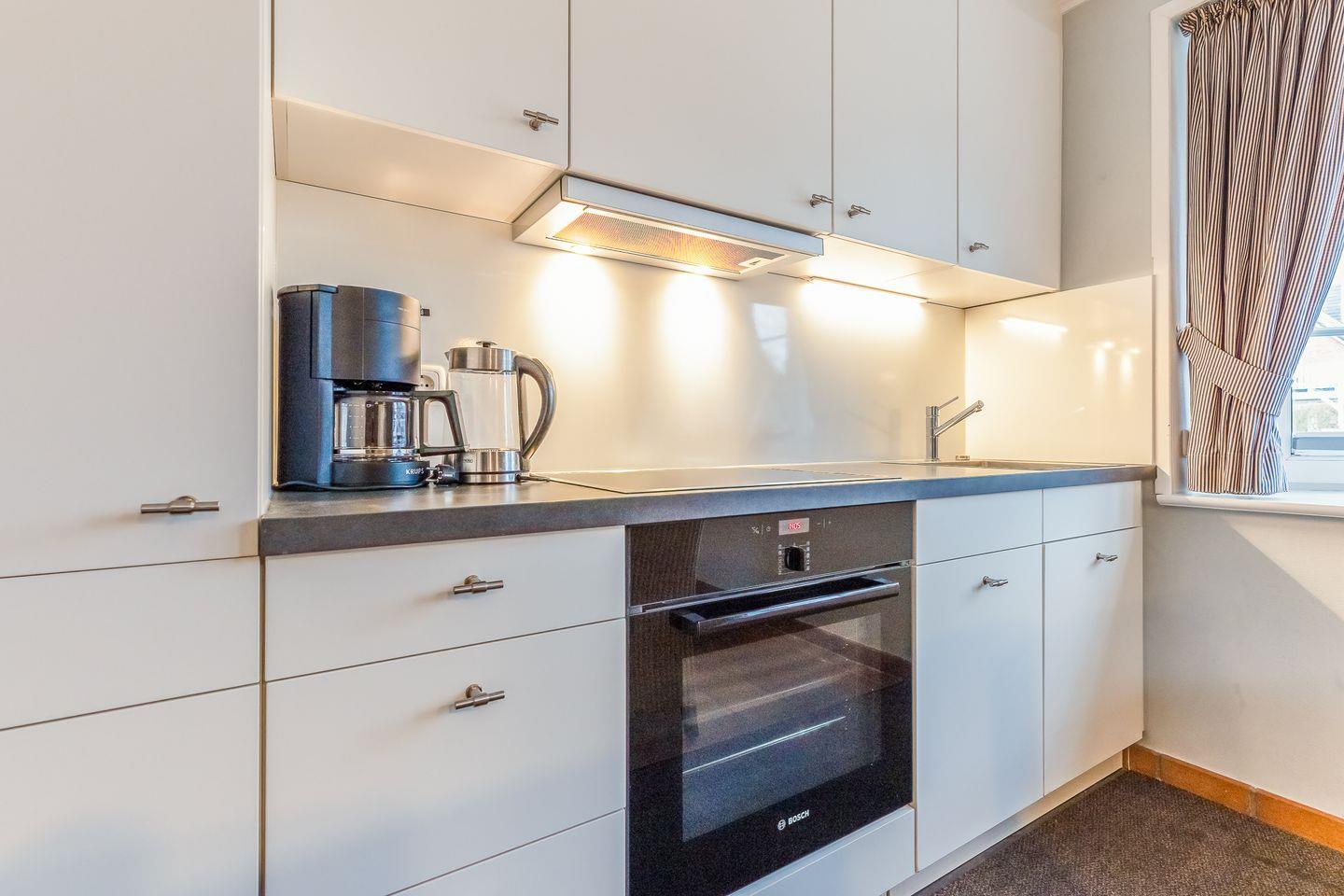 ausgewählte Dekostücke gesetzt. Der offene Wohnbereich unterteilt sich in eine gemütliche "Sofa-Ecke", die im Falle des Falles in auch in eine Schlafmöglichkeit umgewandelt werden kann sowie einen Essbereich, der an die moderne Küchenzeile angrenzt. Schön auch: die kleine Terrasse für den den Absacker am Abend.