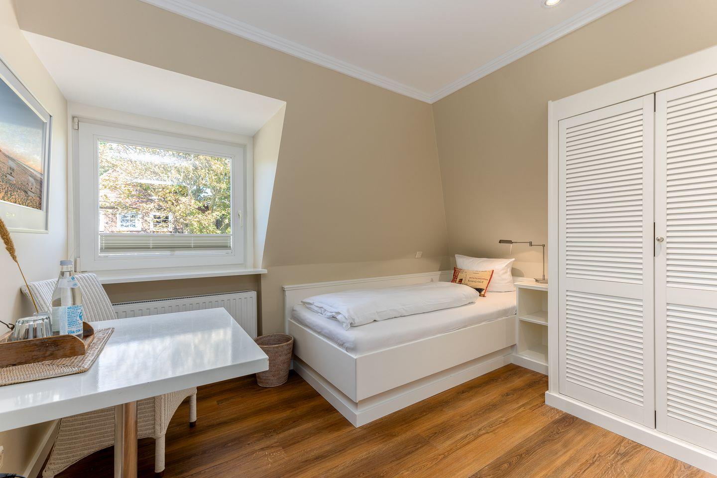 Gemütliches Einzelzimmer Seabreeze in Westerland mit stilvollem Design und nah am Strand, ideal für einen entspannten Urlaub.